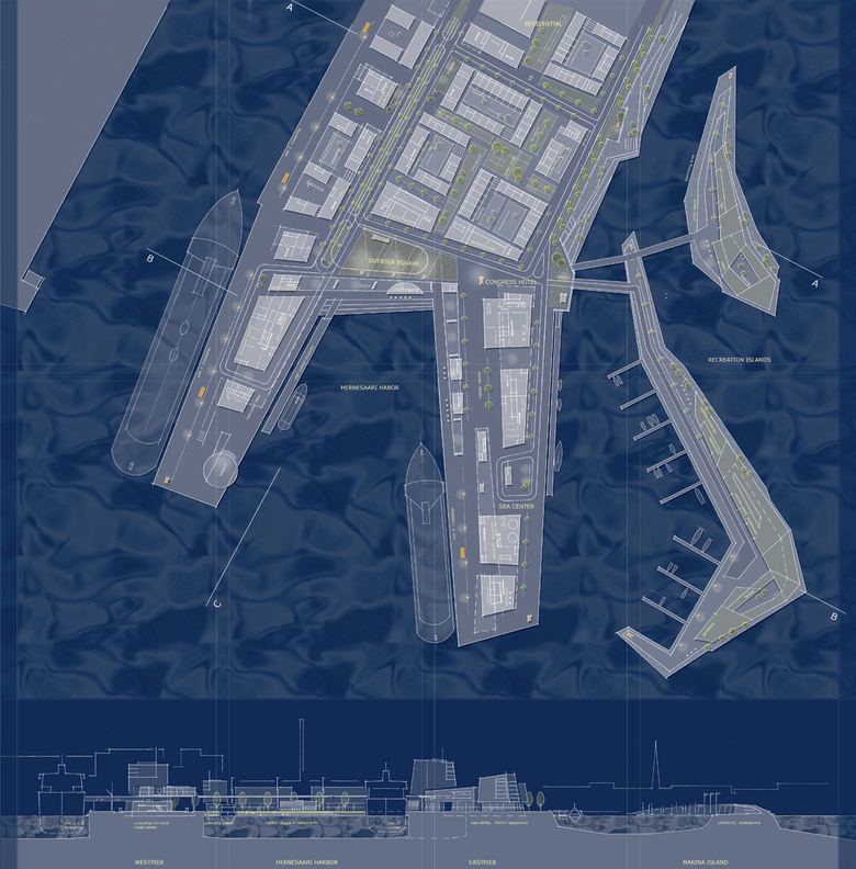 Hernesaari - ein maritimes Quartier, das mit der neuen Hafenarena und zeichenhaften, fernwirksamen Bauten die von See kommenden Besucher und Kreuzfahrer auf die Ostseemetropole einstimmt.