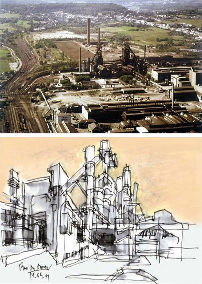 Als strukturelles Leitbild wird Tony Garniers „Cité Industrielle“ zitiert, nicht im strengen funktionalistischen Sinne, sondern als human-rationaler Typus, in dem räumliche Schwerpunkte und spezifische Stadtfunktionen mit hoher stadtgestalterischer und atmosphärischer Qualität sowie innovative Gebäudetypologien auch im Nebeneinander von Stadt und Industrie bestimmend und ablesbar sind.