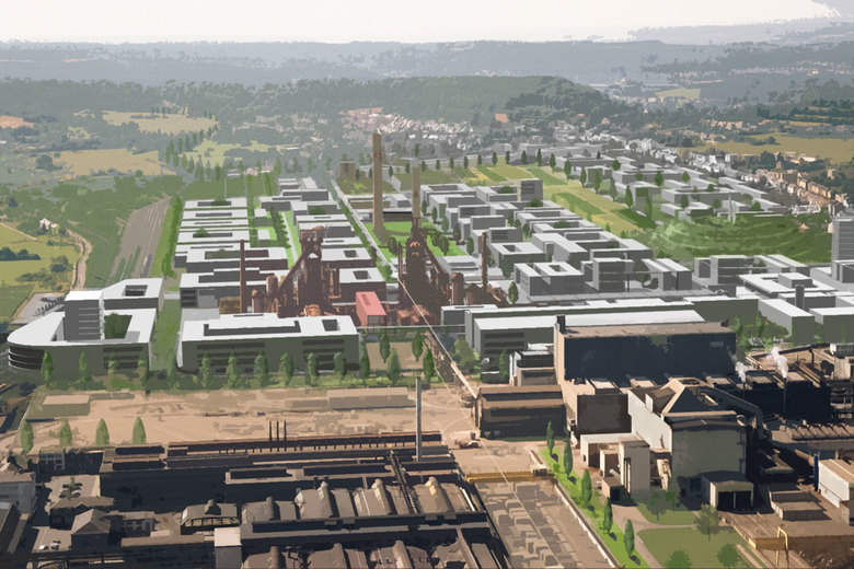 Das 120 ha große Gesamtgelände ARBED-Belval wird zum eigenständigen, innovativen Stadtquartier entwickelt, das mit der mittigen Cité, der Hochöfen und flankierenden Stadtquartieren eine einprägsame, signifikante Stadtfigur darstellt. Mit der Aufnahme und Weiterentwicklung von Ordnungslinien, Spuren und Relikten der industriellen Vergangenheit wird die Systematik und Rationalität der alten Industrieanlage zur konstituierenden Grundlage der neuen Stadtstruktur und die Geschichte des Ortes Bestandteil der neuen Stadt. Prägend für das Entwurfskonzept ist eine stringente Ordnung auf der Basis eines orthogonalen, modularen Systems. Es entsteht eine Stadt, die auf einer gebauten Industrieterasse wie eine Insel in der Landschaft liegt, sich in ihrer Struktur als planmäßig angelegte Gesamtheit darstellt und mit den umgebenden Stadtquartieren und Landschaftsarealen vernetzt ist.