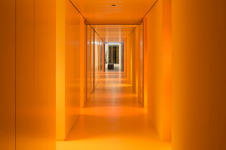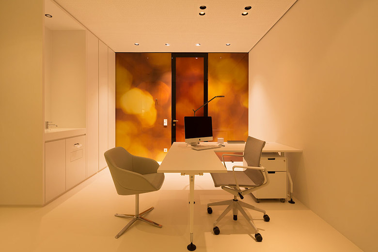 Das zeitlose Design mit eleganten, unaufdringlichen Formen und dezenten Farben lässt eine fast klösterlich anmutende Umgebung entstehen. Diese Stimmungen nimmt die Lichtplanung auf, indem sie eine meditative Atmospähre schafft und sanfte Übergänge von der Außenwelt in die Geborgenheit der Innenräume zeichnet.