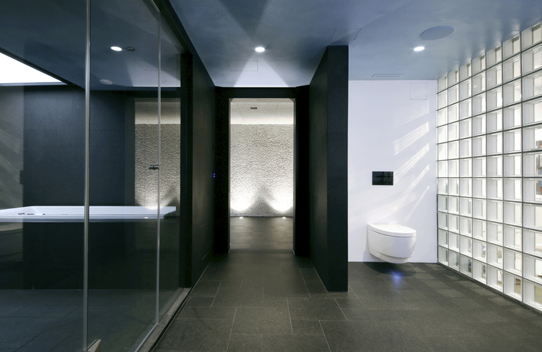 Angrenzend an den zuvor beschriebenen Asiaraum kommt die Wellnessanlage mit Dampfbad und darin befindlicher Whirlpoolanlage zu liegen sowie der Fitnessbereich mit Nasszelle. Insbesondere das beabsichtigte Raumkontinuum, die hochwertige Materialverarbeitung und die technische Überlagerung von klimatischen Differenzen, Medienangeboten und stark wechselnden Gebrauchszuständen machten den Umbau dieses Bereichs zu einer grenzwertigen Herausforderung. Letztlich kann das ganze Haus per Ferneingriff überwacht und gesteuert werden.
