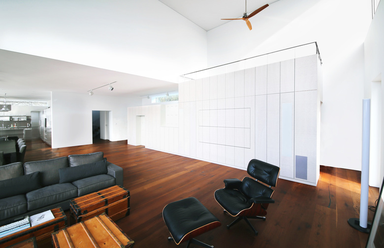 Funktionalität auf, wie die Ankleide und die Medienwand im Wohnraum.