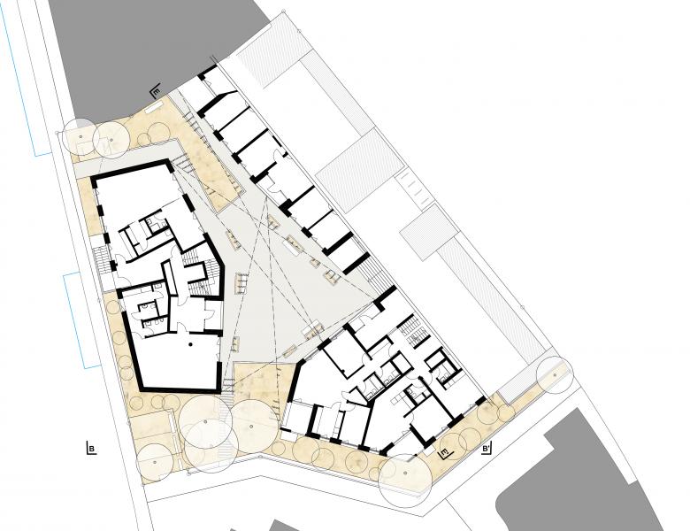 Der Aussenraum der Neubebauung Schaffhauserstrasse trägt die Erinnerung an die Vergangenheit des Ortes in die Zukunft. Bauteile der heutigen Bebauung werden in die neue Umgebungsgestaltung integriert und so eine CO2-arme Freiraumgestaltung geschaffen.