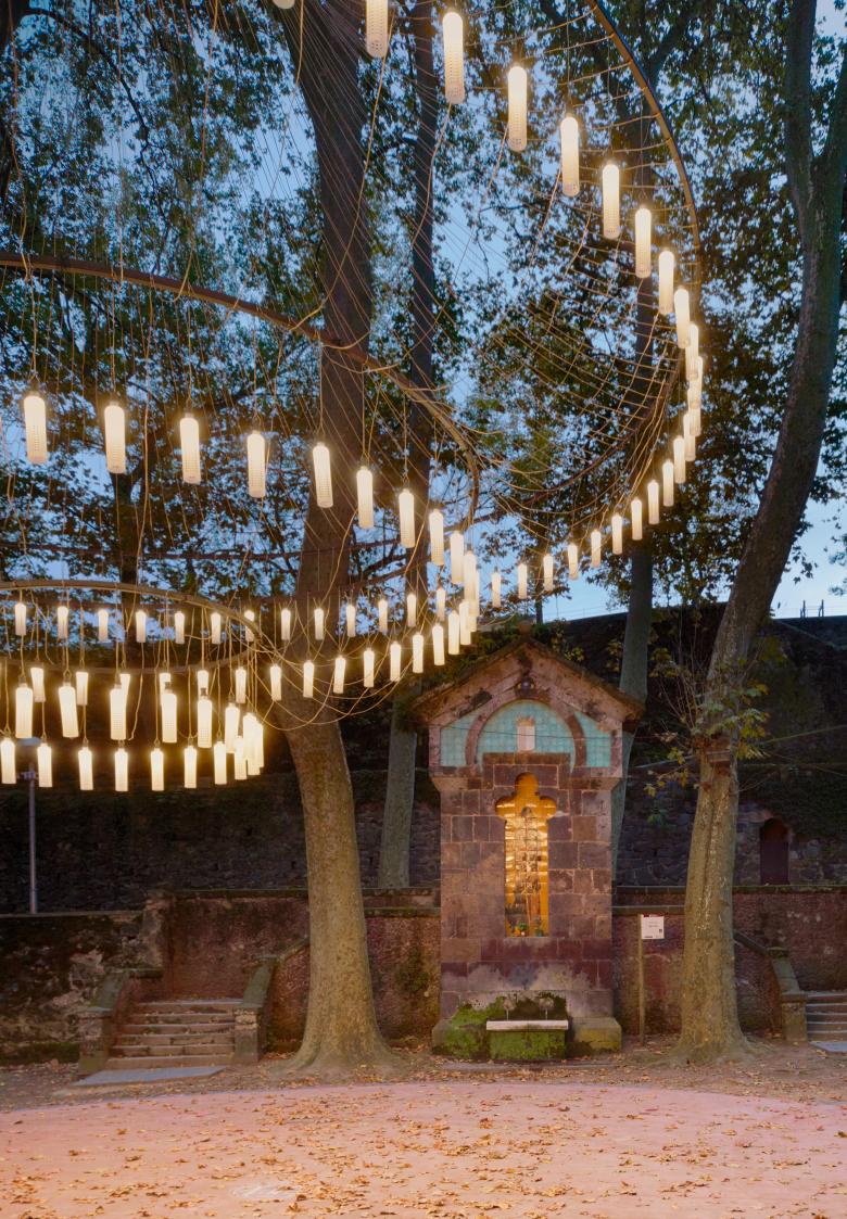 La instalación reconoce el doble carácter del paraje: lo engalana celebrando su papel como estancia comunitaria de ciudad, al mismo tiempo que construye una atmósfera propicia para el paseo introspectivo. Durante las largas noches de invierno y pandemia, la luz, como un imán, ha invitado a los ciudadanos a redescubrir este lugar público único. Y no únicamente descubrir; al auspicio de la lámpara, las fuentes han vuelto a ser el escenario de un sinfín de actividades espontáneas. Por petición popular, la instalación sigue en marcha a día de hoy.