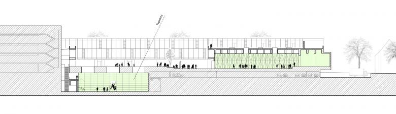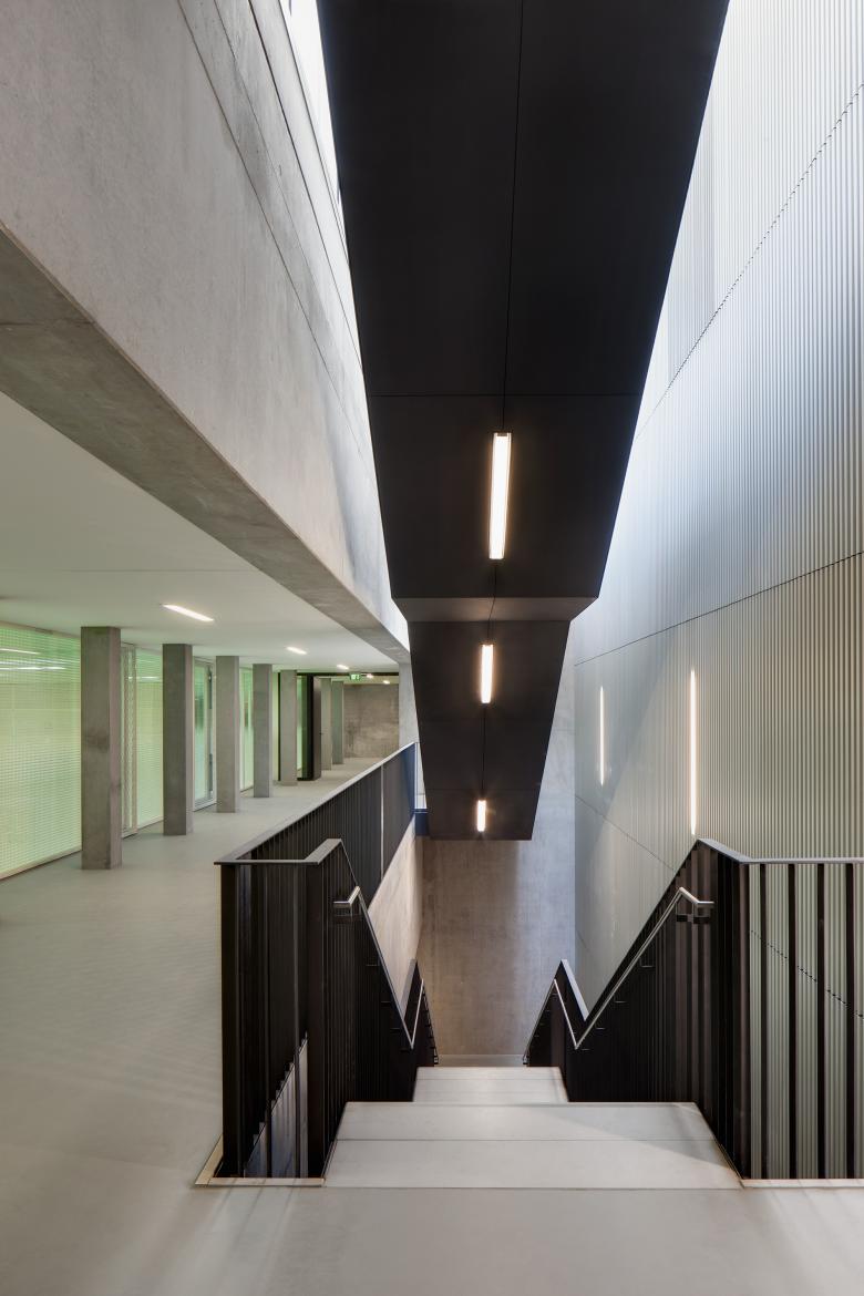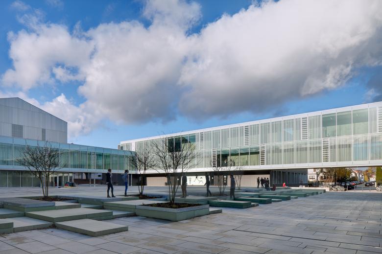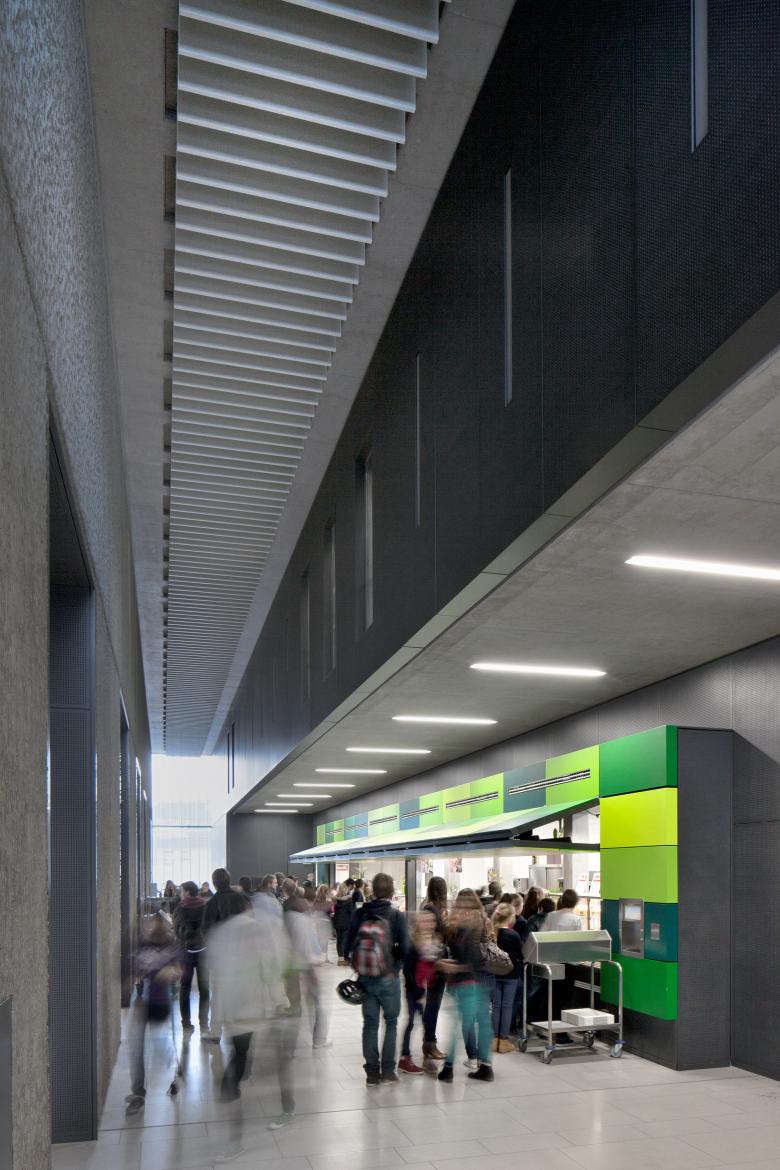 Die Stadt Oberursel hat sich für eine Weiterentwicklung des innerstädtischen Standortes des zukünftig 7-zügigen Gymnasiums entschieden. Die besondere Herausforderung des Projekts bestand darin, das relativ große Bauvolumen auf einem knappen Grundstück in den städtebaulichen Kontext zu integrieren. Die Erweiterung umfasst 3 U-förmige Klassenhäuser, einen langgestreckten Riegel mit naturwissenschaftlichen Fachklassen, eine unterirdische 3-fach-Sporthalle, Ganztagsräume, eine Tiefgarage für 120 Stellplätze sowie eine Aula mit Mensanutzung für bis zu 1.700 Schüler.