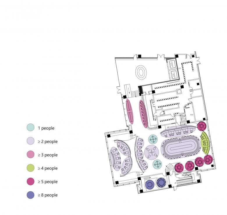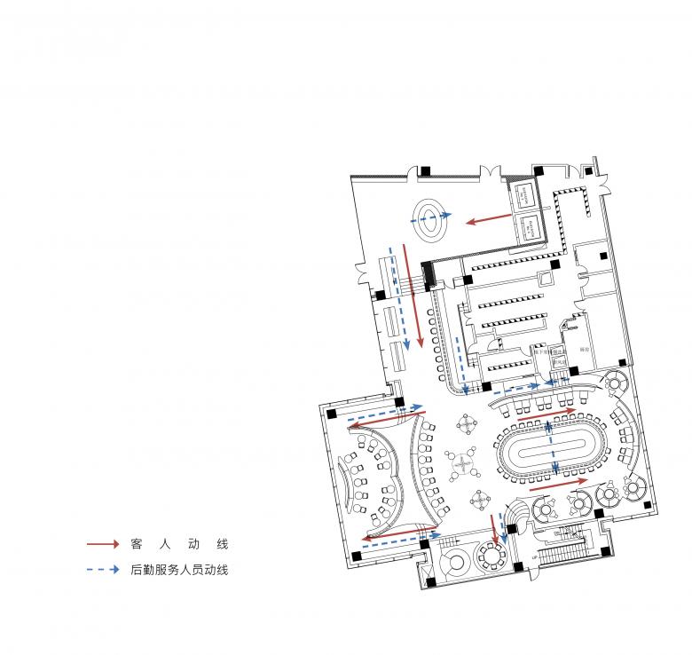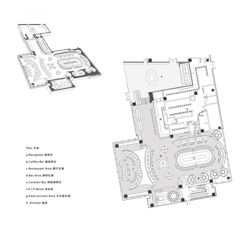 The ring "floating" in the atrium runs through the lower and upper areas. From the atrium to water bar, restaurant area, bar area as well as semi-open and private sections, the space is laid out based on different functions and degrees of privacy. With a smooth circulation, the entire space is able to accommodate 200 people for dining, relaxing and socializing. Various Associates incorporated the ideas of "waiting hall" and "countdown" into spatial scenes that rewind time, while also bringing in stories and creating spatial rhythms.