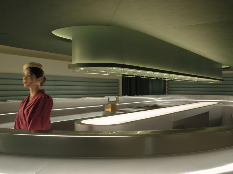 Various Associates tried to start from "summarizing the past", and then deduced a futuristic spatial design experiment. As opposed to adopting a one-direction timeline, the design took "present" as the origin, which extends in two directions and connect past glories with the vision of future, thereby creating "retro-futuristic" scenes which cross time.