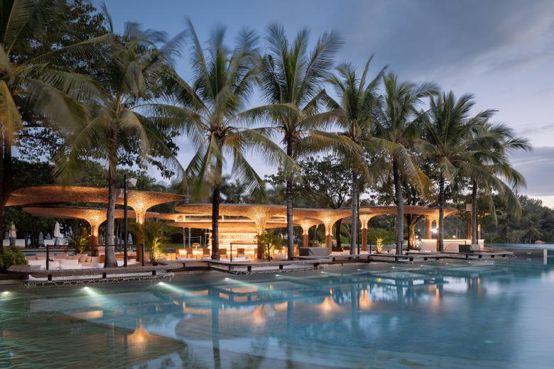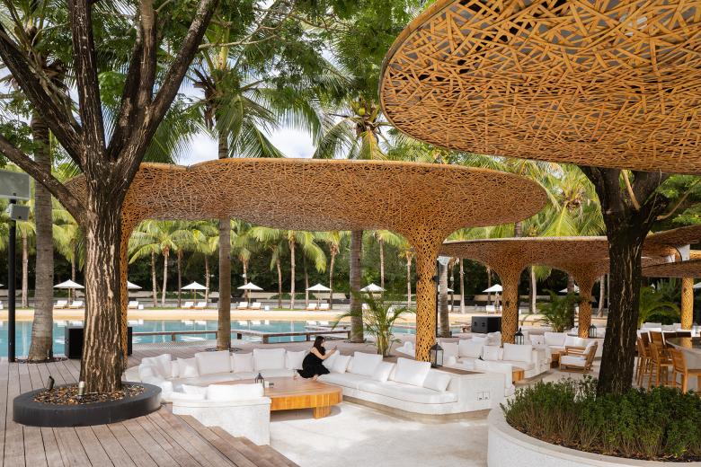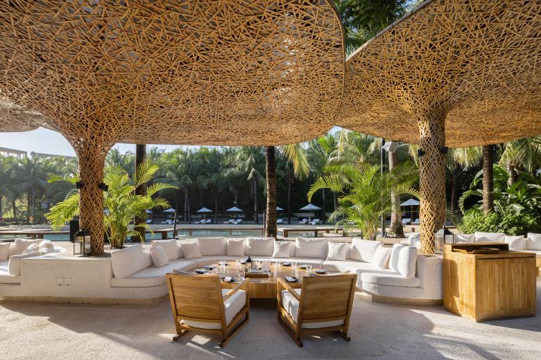 The renewed beach club, based on the design concept "Under the Tree", indulges its guests in the passion of Hainan Island from day to night in a way that integrates into nature.