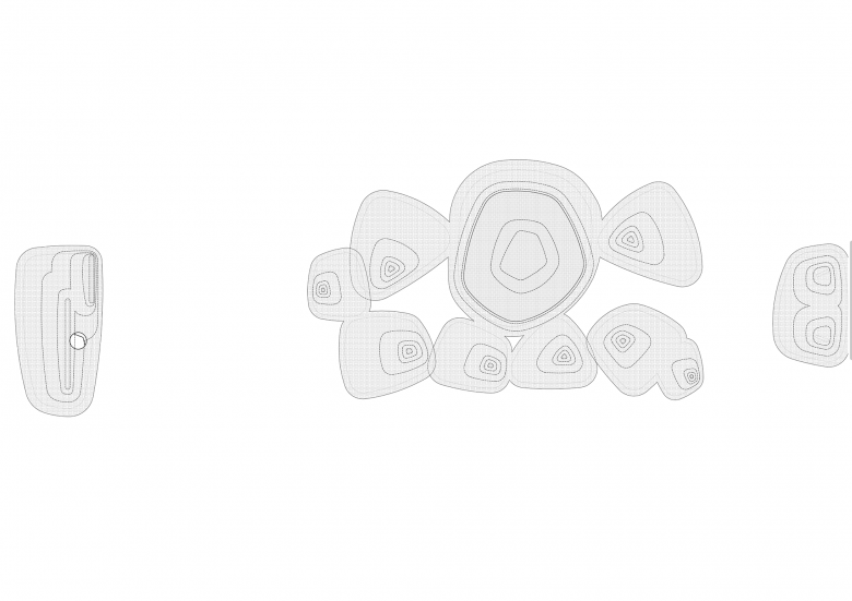 The natural coconut groves and the new structures are scattered around sunken booths. The new structures are connected to the ground through their "trunks" that naturally blend with the preserved plants. The expansive and naturally curvy "tree" canopies bring sufficient protection to the club's guests, while the space between each canopy unintentionally brings surrounding greenery into the view.