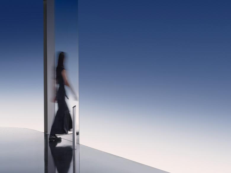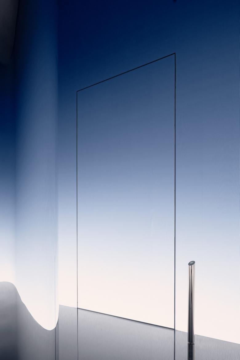 As the backdrop transitions into its static mode, the models of buildings unveil their most basic outlines against a gradient skyline. The clean and softened background enables visitors to concentrate their gaze, immersing themselves in an ethereal sense of the future within a boundless space.