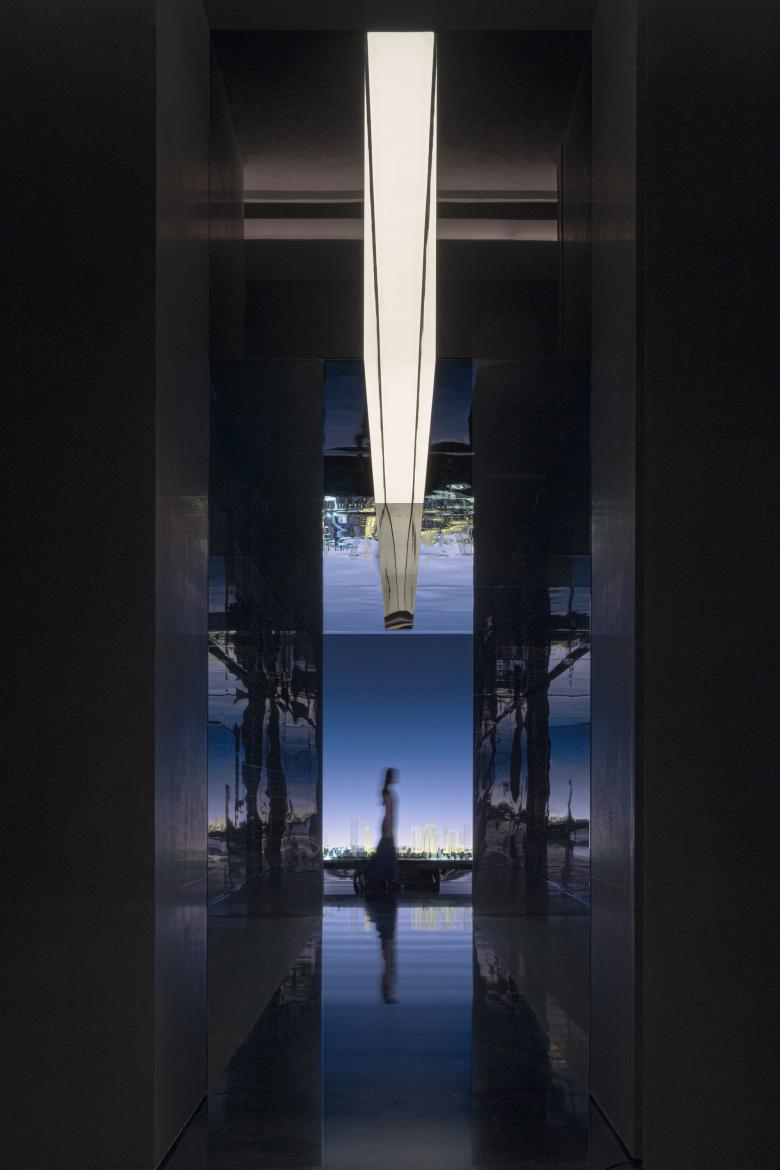 The urban exhibition center of Future City in Hubei area of Luohu incorporates a diverse array of elements, including the real and the virtual, brightness and darkness, light and shadows, the tangible and the ethereal, and reflections of both past and future. Leveraging materials and spatial relations, the design team curated varied experiences and emotional resonance within a confined interior space. Each door entrance offers visitors a journey through different timelines of the city, culminating in a return to their present lives.