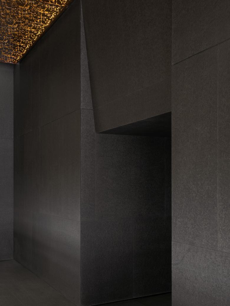 As natural light filters through the hollowed-out patterns, it creates light effects with softened outlines. Visitors can sense the passage of time in the shifting interplay of light and shadows. As they traverse the passageway bathed in dappled light, they will reach the entrance of the exhibition center.