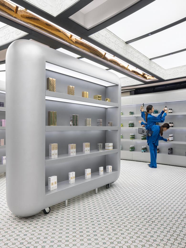 The spatial languages narrate the integration of Eastern and Western cultures. Shanghai-style retro atmosphere and sci-fi absurdity contrast and harmonize with each other through the interaction of art and architecture, giving new interpretation of "Eclecticism" through this cosmetics store based in a century-old Shanghai building.