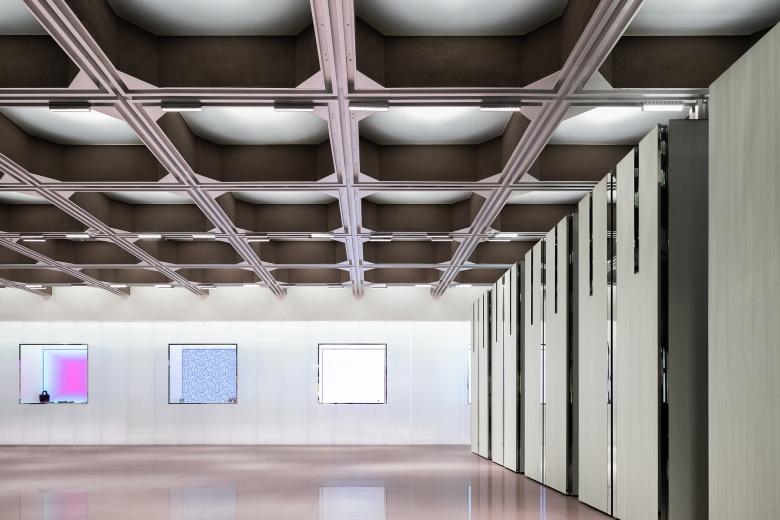 Columns can be moved to two sides and combined as a matrix. In this way, the usable area of the space is maximized to serve a wide spectrum of events, such as pop-ups and small-scale press conferences of brands.