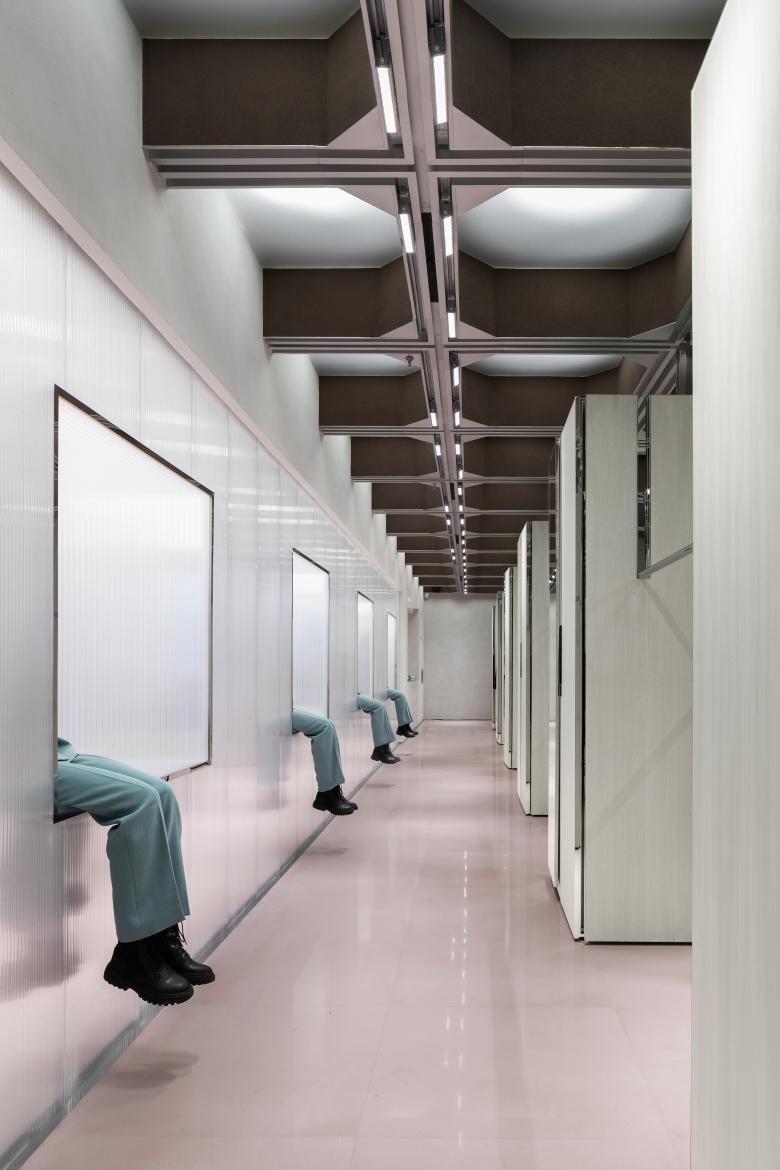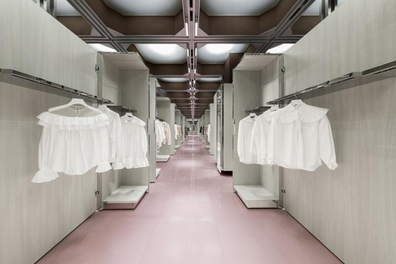 Arranged in an orderly manner, the columns endow the space with a distinctive character, which attracts customers to step in and wander between the columns (i.e. displayed brand clothes).