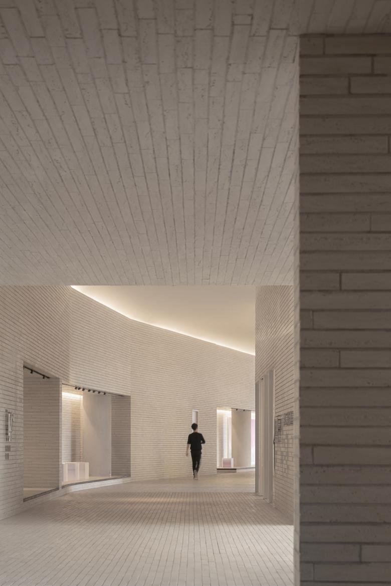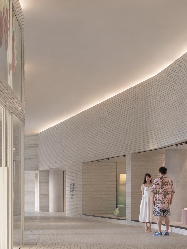 The floorings at the passageway are extended into the shops, creating a feeling of spaciousness via the consistent material texture and color. The top strip lights softly illuminate the building frame, with the brightness flexibly adjustable to meet commercial and operational needs at different times.