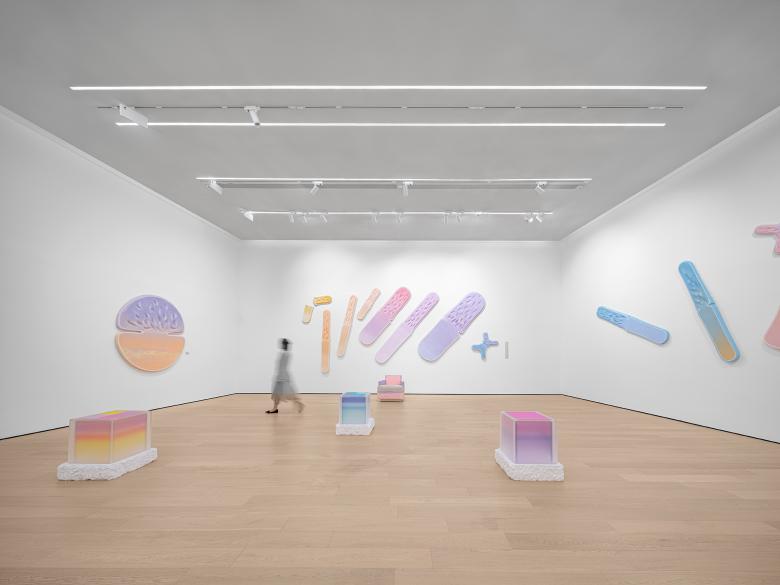 Inside the Art Center is a spacious and open display area, where spaces of different levels and scales add a sense of depth and dimension, enhancing the overall artistic experience. The art exhibition is complemented by original sofa collections designed by Various Associates, which becomes an extension of the art displays.