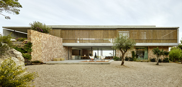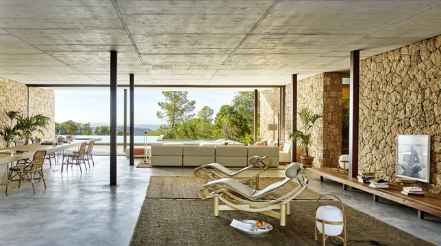 L'objectiu principal del projecte es oferir a l'habitant una situació on la interpretació de la sensualitat del Mediterrani es determini en totes les seves parts i en cada decisió. Per això s'escullen materials produïts a la pròpia Illa d'Eivissa com se'l cas de la pedra en la construcció dels murs de la planta baixa o les fustes de canyes pels sistemes de protecció solar. L'ús de colors càlids juntament amb el blanc de la fa falta defineixen els interiors. S'utilitzen recursos d'espais grans i generosos combinats a la domesticidad del petit. El trencament de la monotonia ofereix una variació rica en matisos de llums i ombres. El mobiliari i els revestiments de sisal d'algues segueixen la mateixa lògica de tots els sistemes constructius de l'habitatge. Ens interessa que tot estigui amb harmonia en un mateix espai.