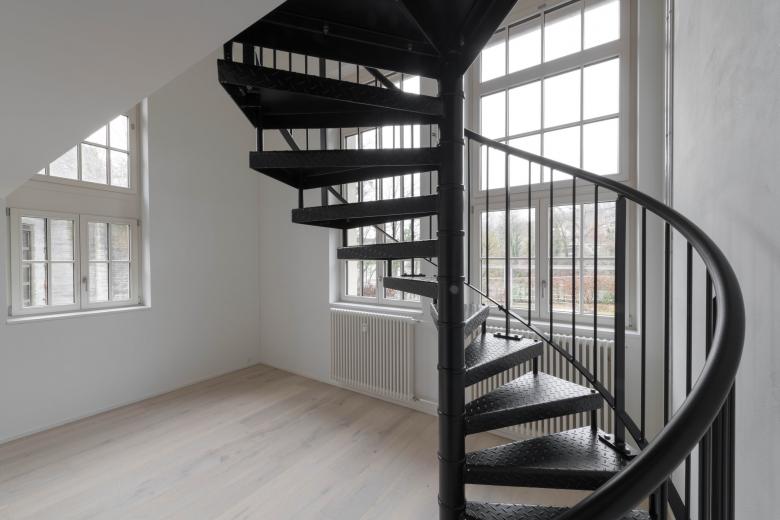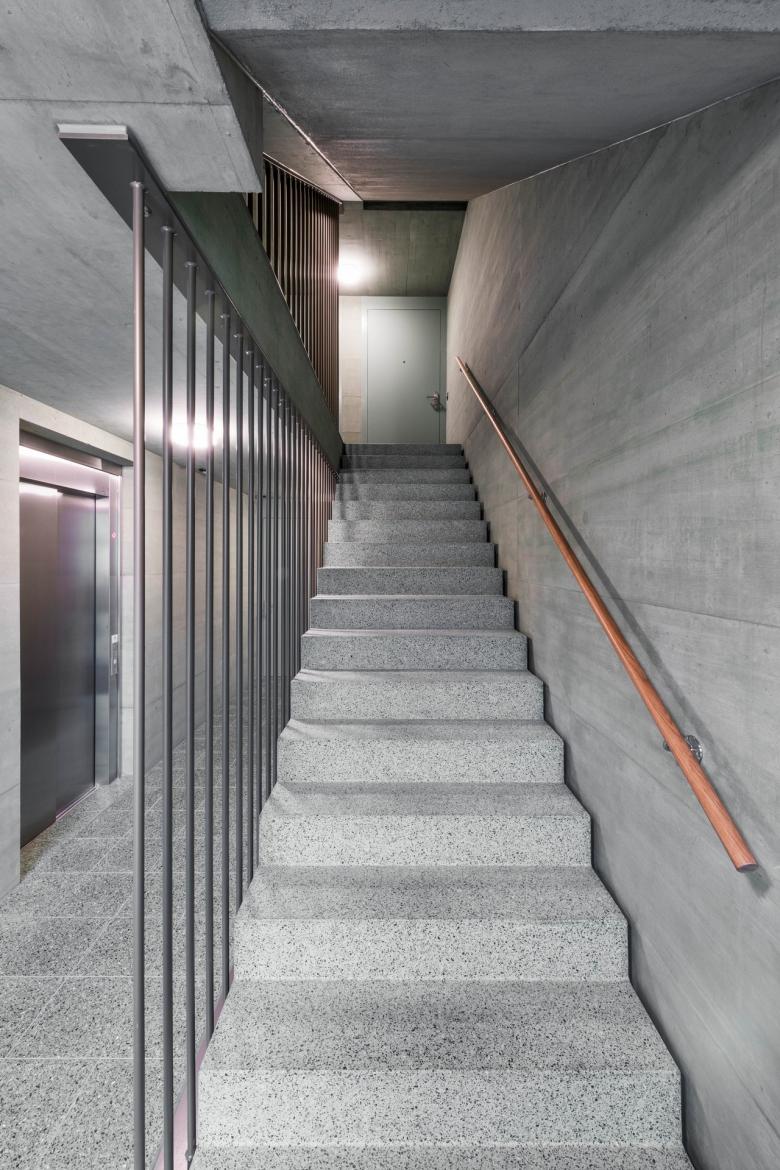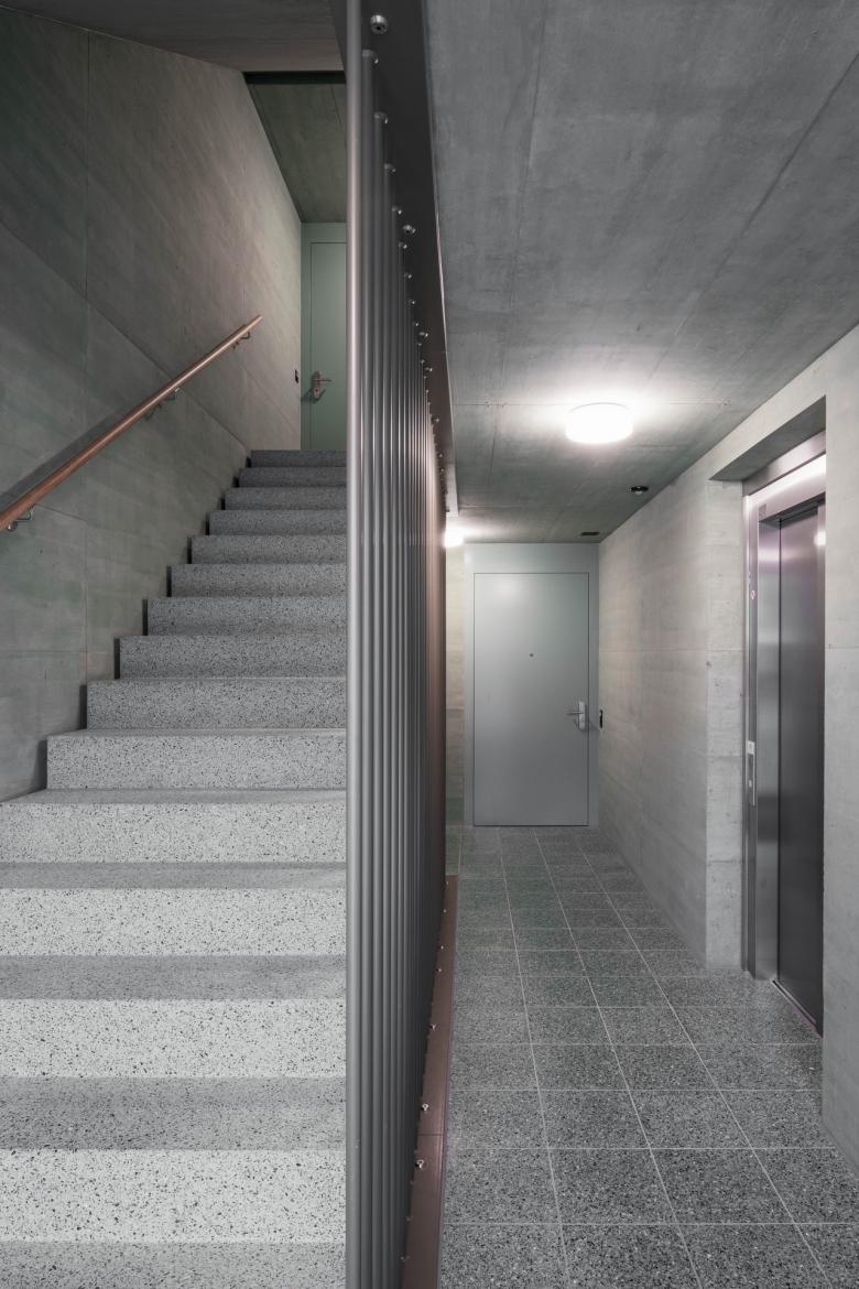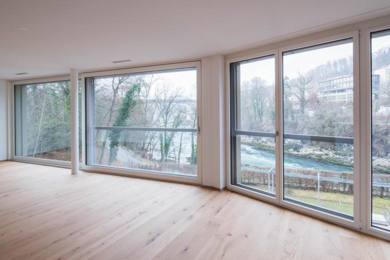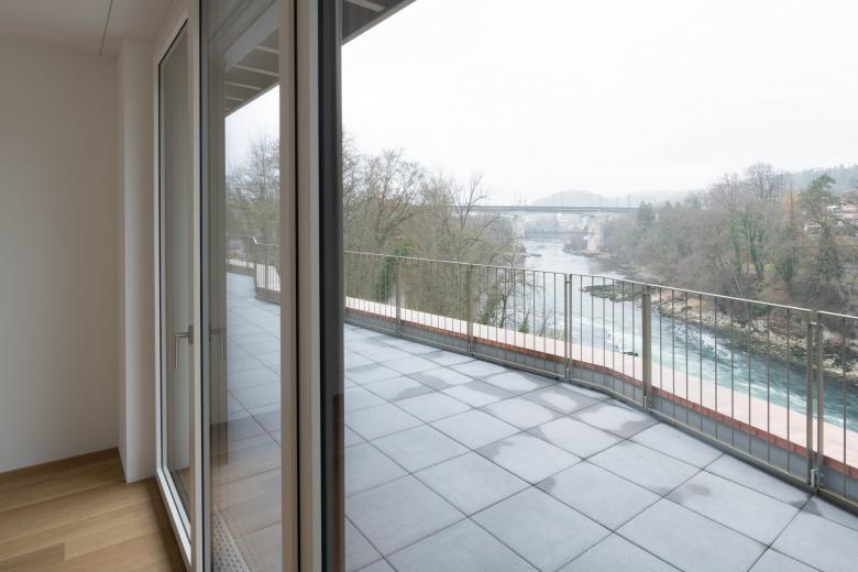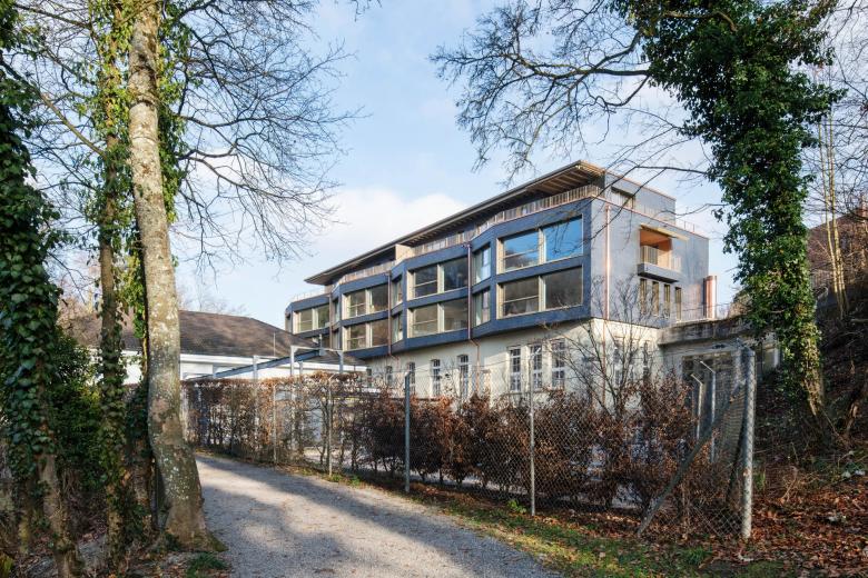 Mit der 2017 fertiggestellten Umnutzung der bestehenden Bausubstanz zu neun gewerblich genutzten Ateliers und dem Neubau einer dreigeschossigen Aufstockung für zehn hochwertige Eigentumswohnungen ist nun ein markanter, intern verbundener, Gebäudekomplex mit aussergewöhnlichem Bezug zur Flusslandschaft der Aare entstanden. Der Neubau bildet sich Richtung Museumstrasse als ruhig proportionierter, dreigeschossiger Baukörper ab, während Richtung Aare die grossformatigen Panoramafenster der erkerartig gefalteten Fassade den unverbaubaren Bezug zur Aare herstellen.