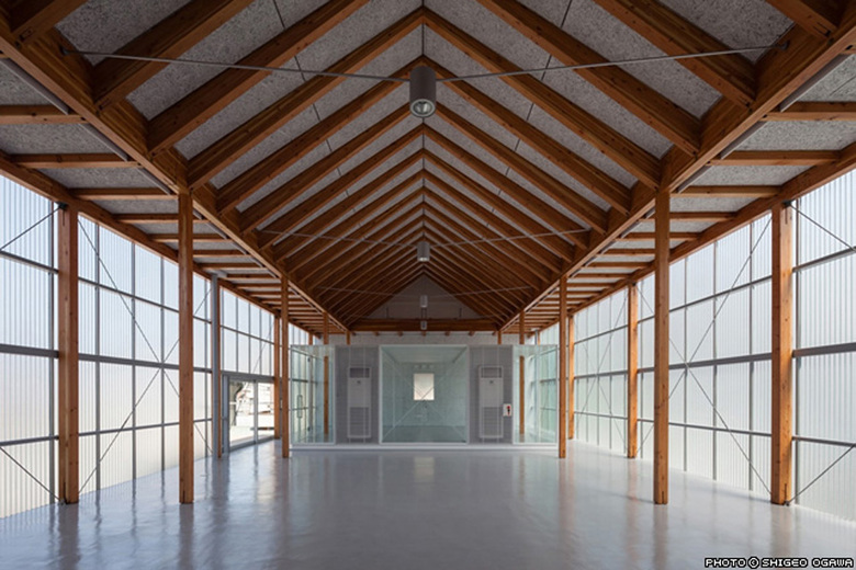 住宅街に面する北棟は木造2階建ての低層の建築とすることで住宅地域の景観に配慮した。北棟は食事や休憩のための空間が主体であり、南棟に比べてよりカジュアルな雰囲気を持たせるように計画している。