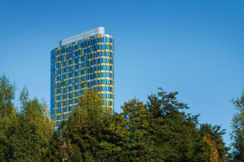 Der Neubau der Hauptverwaltung des Allgemeinen DeutschenAutomobilclub e.V. (ADAC) umfasst ein Hochhaus mit 23 oberirdischen Geschossen, sowie ein fünfgeschossiges Sockelgebäude. Das dynamisch geformte Gebäude ist im Grundriss sternförmig um einen Innenhof angeordnet. Besonderheit des 88 m hohen Hochhauses ist die 8,5 m lange Auskragung an der Nord-Ost Seite. Die Lasten werden hier durch eine Stahlverbundkonstruktion umgeleitet und in den Stahlbetonkern zurückgeführt.