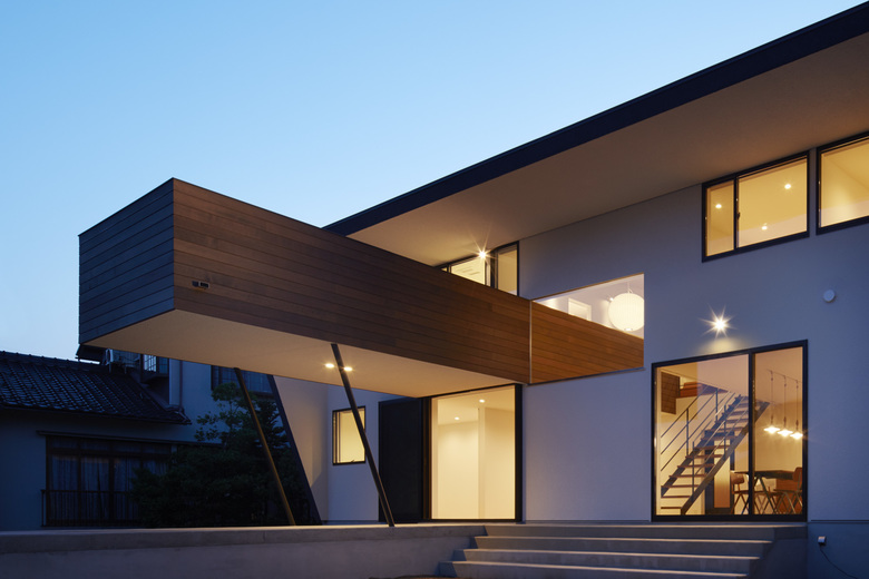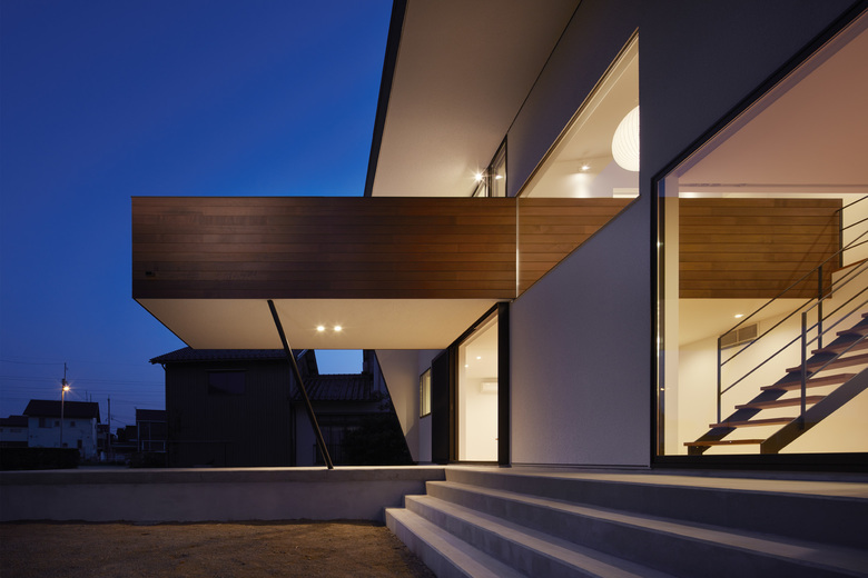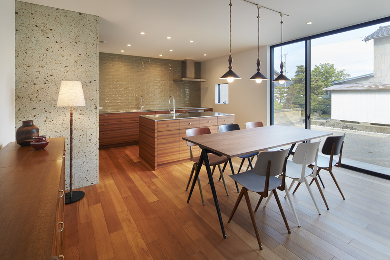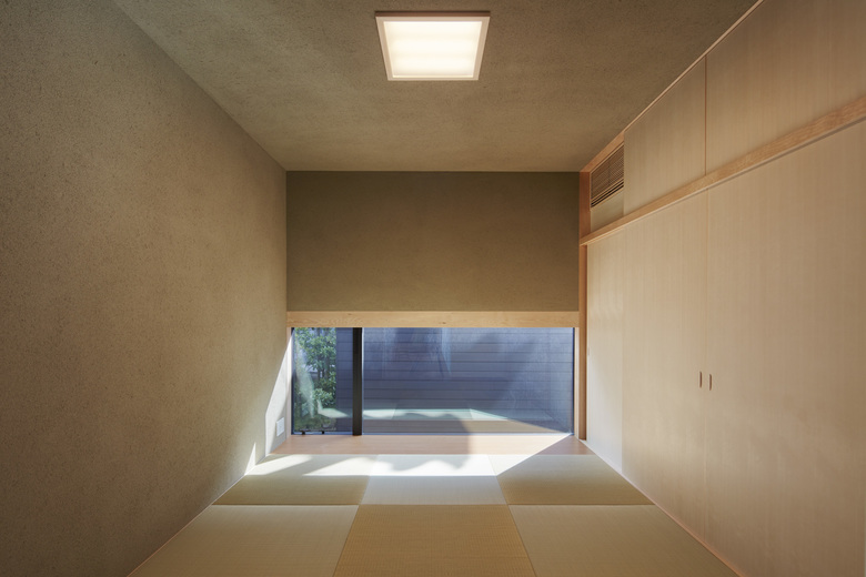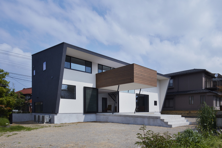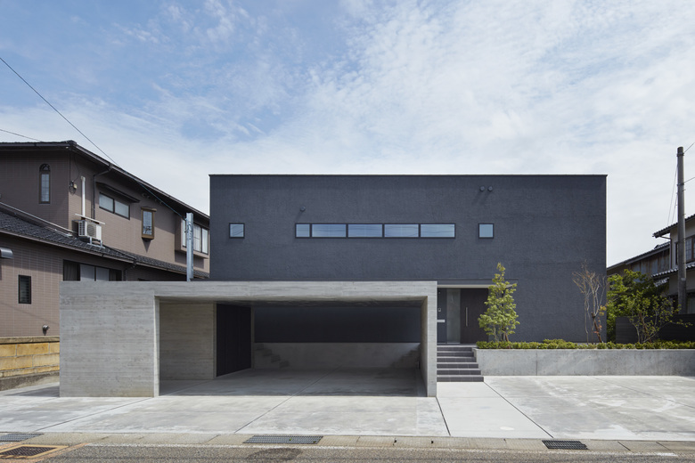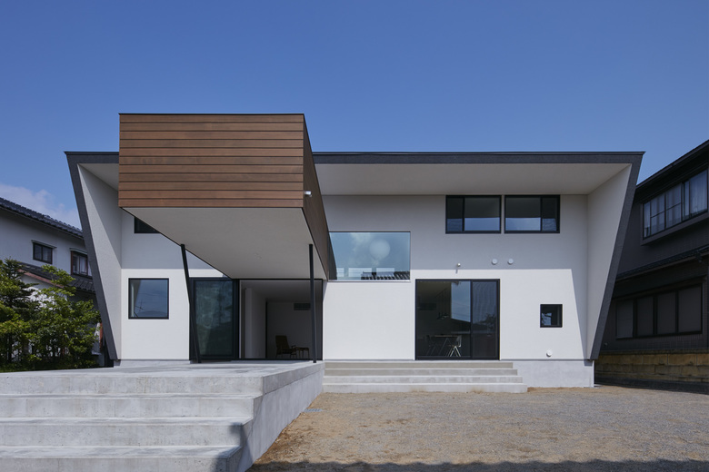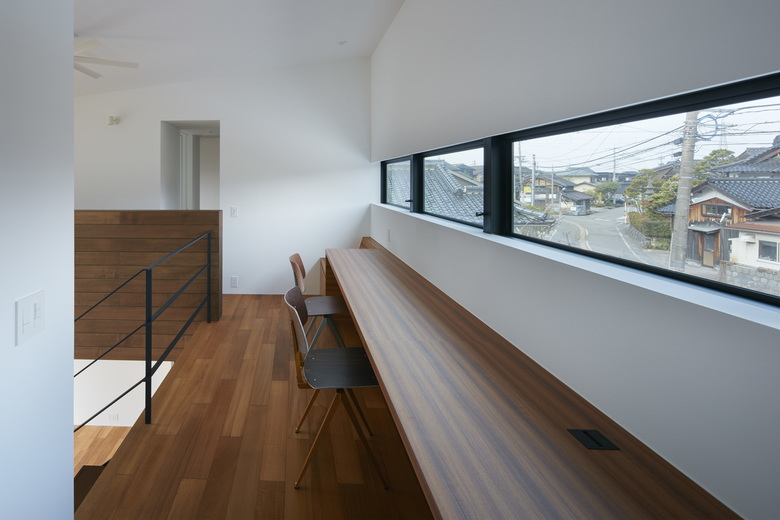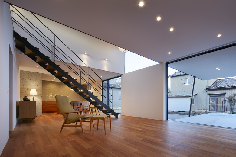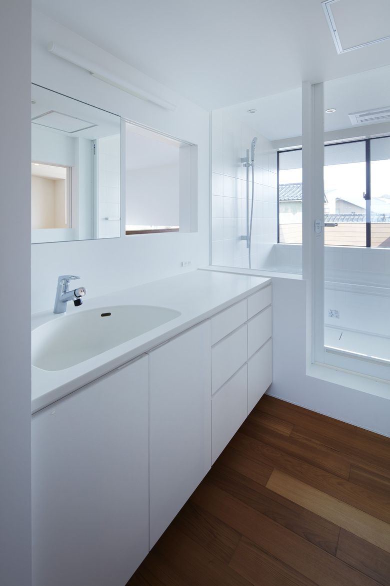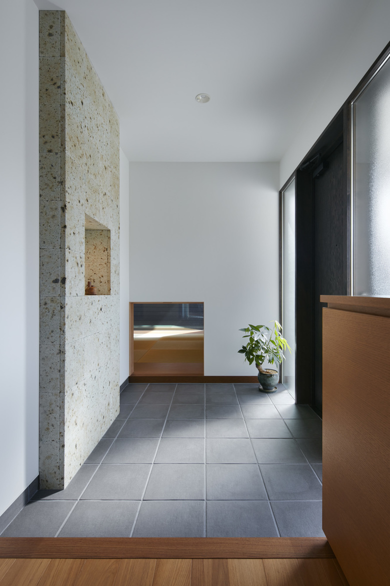 We proposed a building style that would provide a blank space for the surrounding site, where large houses are built all over the site. In response to the request for a house that allows sunlight to enter the house, the plan shape was extended in an east-west direction to allow for a large frontage on the south side. Although it is a simple structure, the way of making openings on the south side was devised to create spaces with different atmospheres depending on the location. This relatively compact rectangular building is placed in the center of the site, with a garden to the north and south, which is divided into two sections to the east and west. These four gardens not only add richness to the house, but also provide a sense of space and greenery to the surrounding environment.