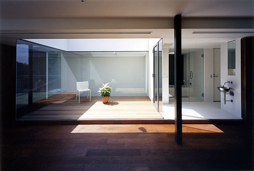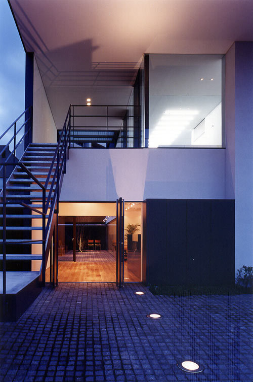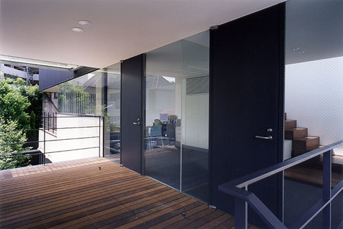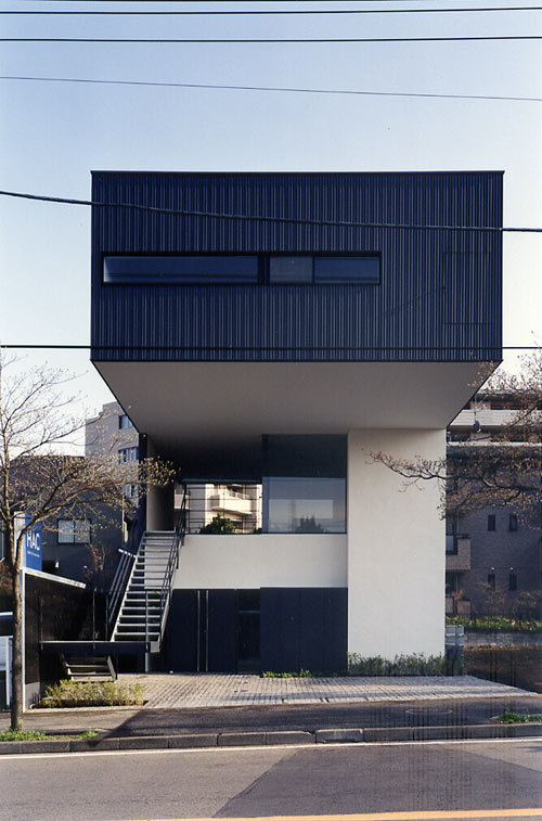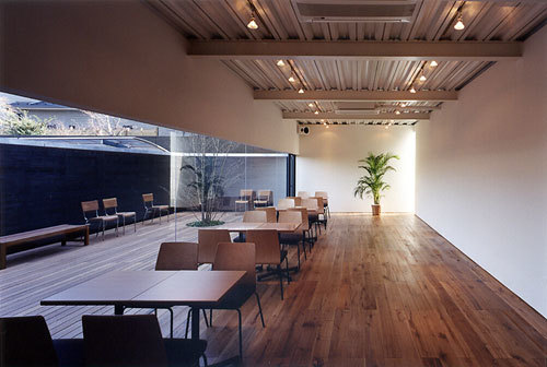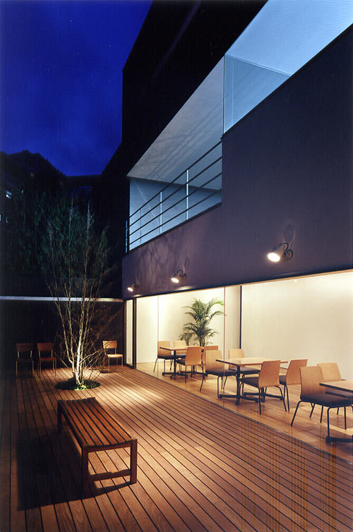 1F Cafe, 2F SOHO, 3 A mixed-use building consisting of a private residence on the first floor. Each floor is planned to appropriately incorporate a different external environment: a courtyard in the same area as the café, a terrace flanking the SOHO, and a courtyard located in the center of the residence.