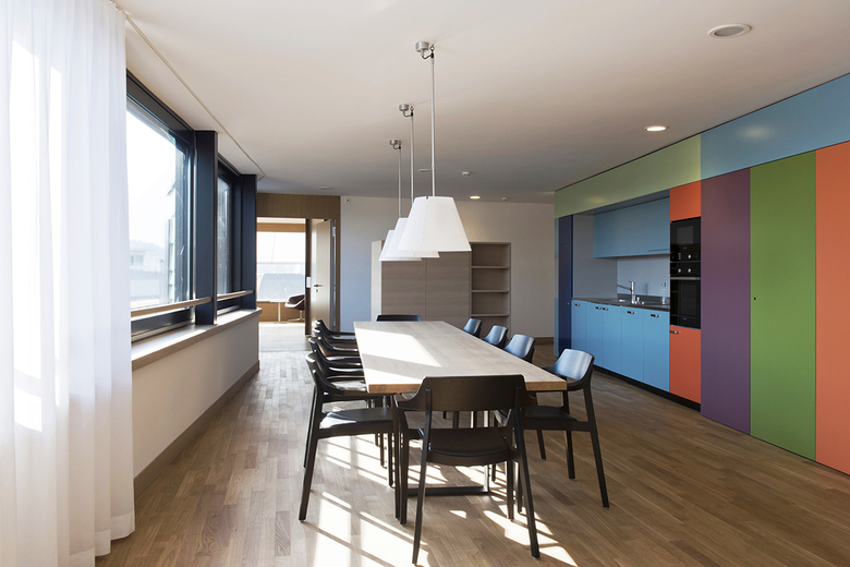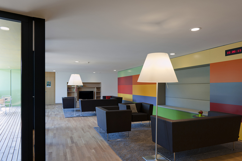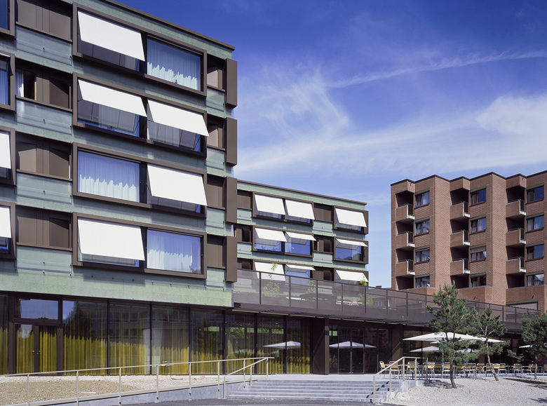 Das Alterszentrum mit Minergiestandard ist ein wichtiger Bau in der Energiestadt Effretikon. Der aussenliegende Sonnenschutz, die hochwärmegedämmten vorfabrizierten Holzrahmenelemente der Fassade, die guten Gläser und der Speichereffekt der Böden und Sichtbetondecken stellen die bauphysikalische Behaglichkeit sicher, die durch die Materialisierung und Farbgebung auch sinnlich wahrnehmbar wird.