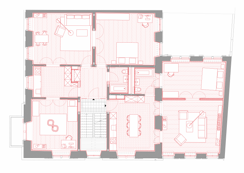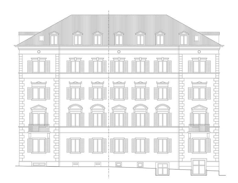 Die wiederhergestellte Kohärenz von Grundriss und Fassade stärkt das städtische Gebäude in privilegierter Lage langfristig als werthaltige Immobilie.