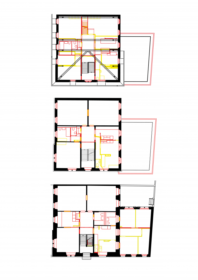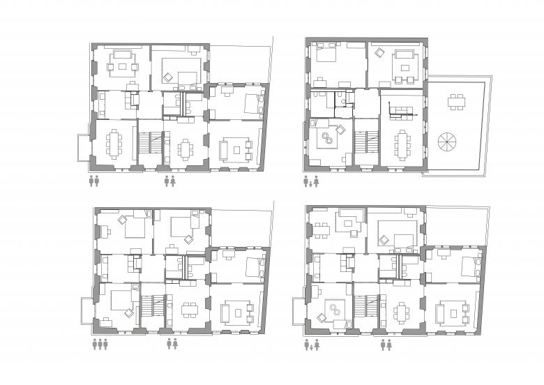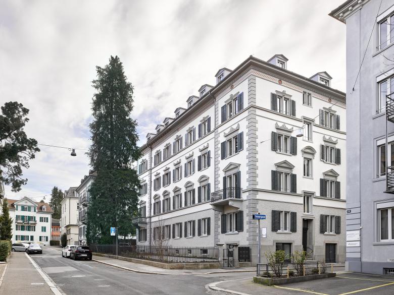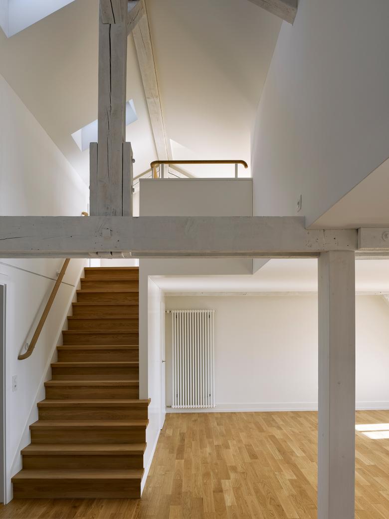 Die Konzeption des Umbaus spürt die kammerartige Raumstruktur des denkmalgeschützten Baumeisterhauses auf und übersetzt sie in präzise und klare Grundrisse mit qualitätsvollen Räumen. Grosszügige Verbindungen und Rundläufe schaffen allseitige Durchblicke und atmosphärische Lichtstimmungen. Die Flexibilität der nutzungsneutralen Räume ermöglicht vielfältige, unterschiedlichste Wohn- und Lebensformen und sichert langfristig die hohe Gebrauchstauglichkeit und Wohnqualität – das historische Gebäude eignet sich in hervorragender Weise für zeitgemässes Wohnen.