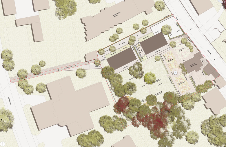 Die Setzung der Neubauten und die Aussenraumgestaltung sind darauf ausgerichtet die Qualitäten des historischen Gartens zu erhalten, wieder zu schärfen und nicht zuletzt als werthaltige, nutz- und wahrnehmbare Lebensqualität für die Anwohner zu sichern. In diesem Sinne bleibt das Herz des historischen Gartens im Zentrum des Grundstückes als zusammenhängender Freiraum erhalten und erhält mit den Neubauten einen neuen Rahmen.