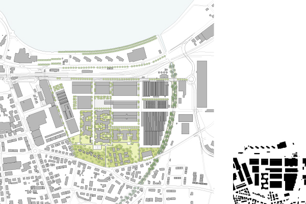 Das Saurer Areal WerkZwei, ein bis heute für die Öffentlichkeit kaum zugängliches Industriegelände soll geöffnet, neu genutzt und Teil der Stadt Arbon werden. Eine Abfolge von klar definierten, mit Bäumen bestückten öffentlichen Aussenräumen verleiht dem neuen Quartier einen grünen, aber städtischen Charakter: Stadt statt Agglomeration.