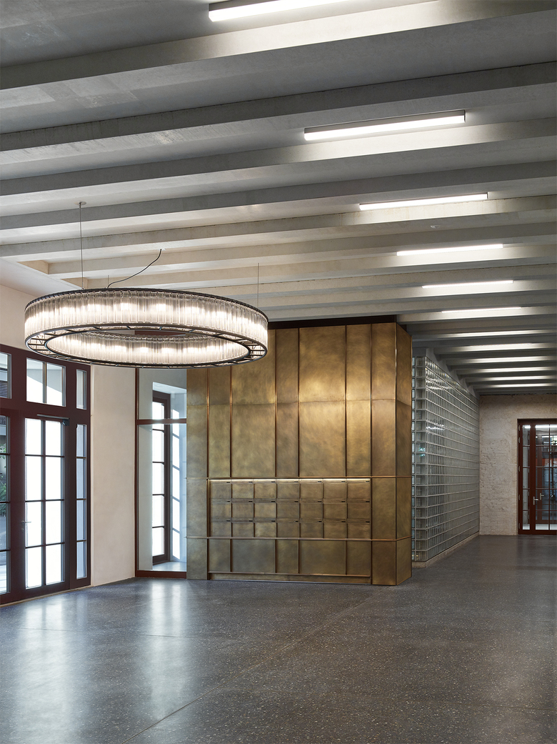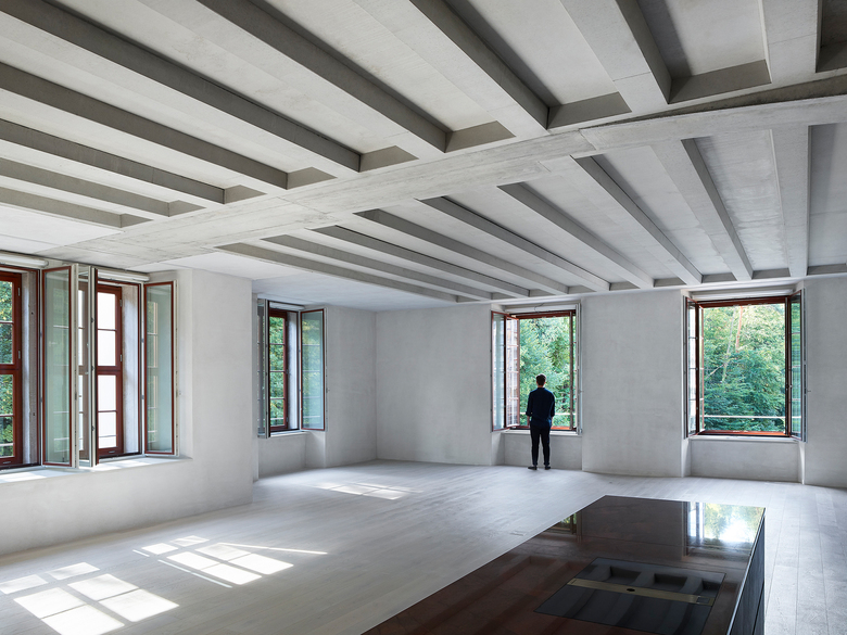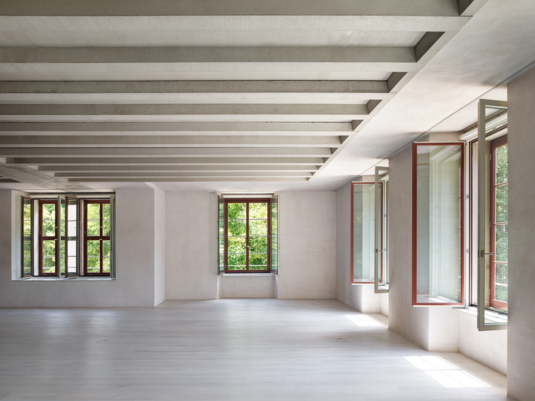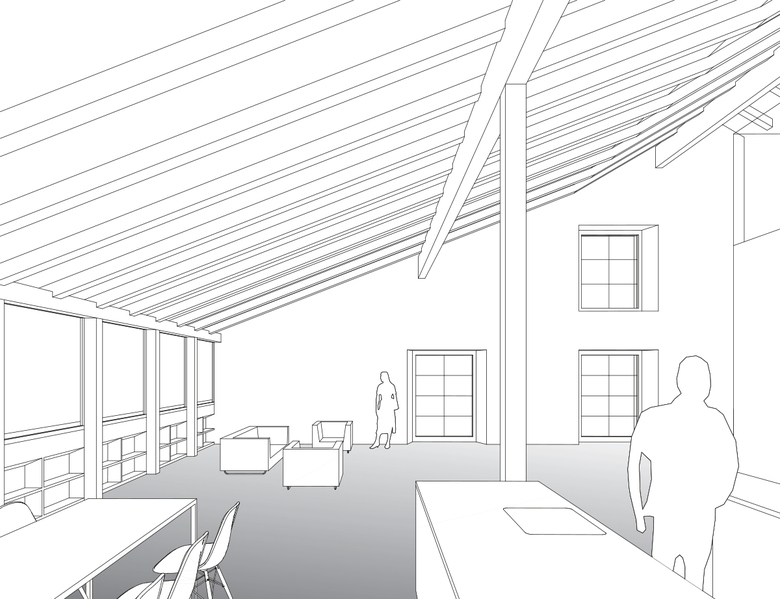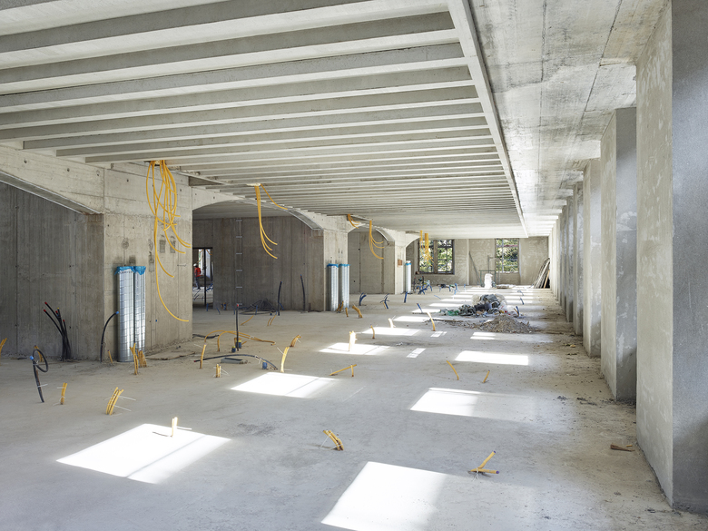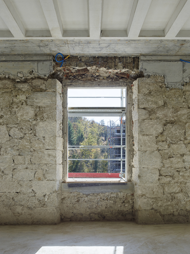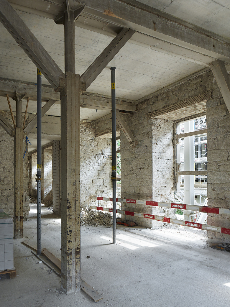 Heute ist das mächtige denkmalgeschützte Spinnereigebäude nur noch ein Torso. Einzig die Umfassungswände ohne Dach und Fragmente der unteren Geschosse sind noch materiell vorhanden: das Kraftwerk auf der Ostseite sowie Unter- und Erdgeschoss des Anbaus auf der Westseite. Das Konzept baut auf dem Erhalt dieser zwei atmosphärisch starken Raumeinheiten und deren präzisen Ergänzung auf – in der Tradition der Wertschätzung von Vorgefundenem verbunden mit aktivem Weiterbauen.