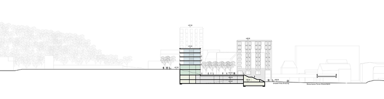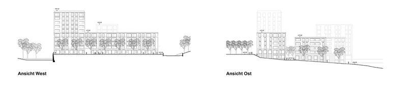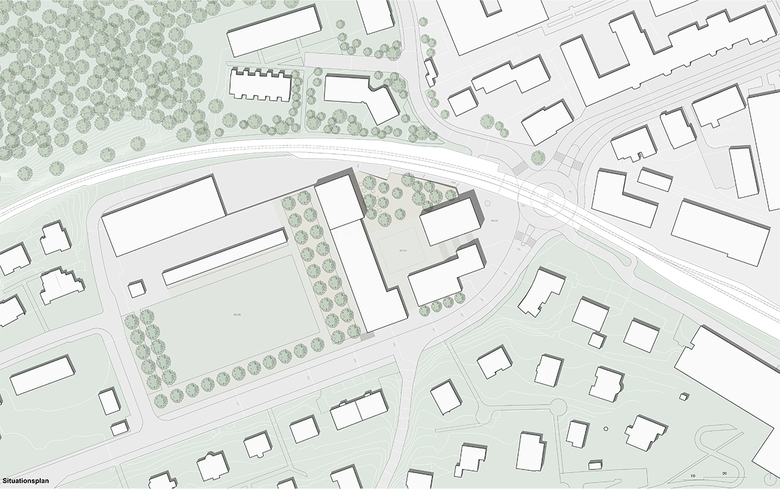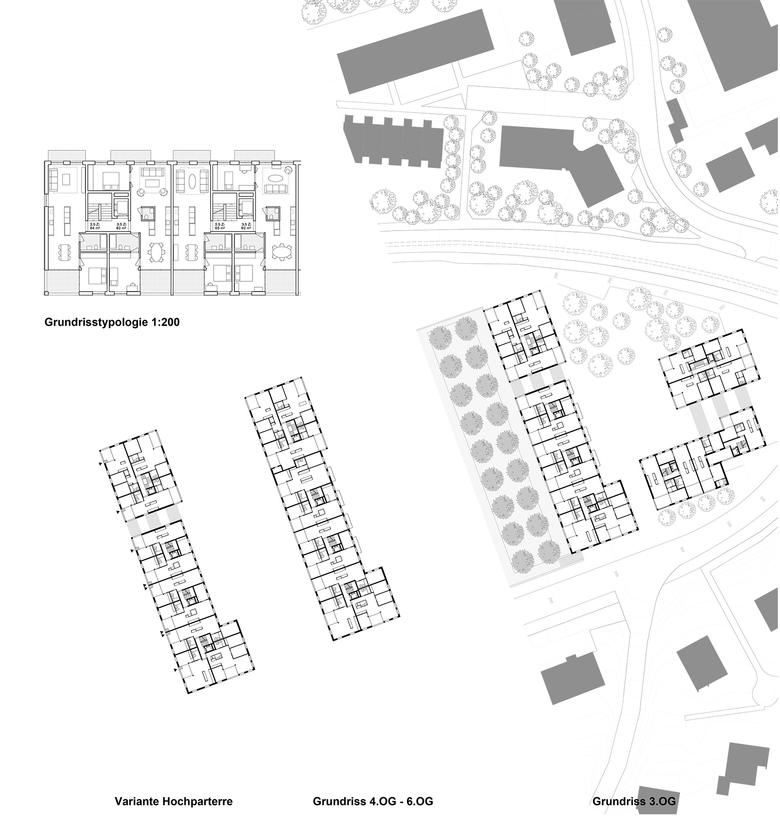 Schmale Durchgänge öffnen sich auf grosse Platzräume, harte steinerne Oberflächen wechseln mit weichen, naturnahen Belägen mit Spiel- und Aufenhaltsqualitäten unter Bäumen. Vielfältige fussläufige Erschliessungswege vernetzen Aussenräume und Bebauung mit der Nachbarschaft und bilden so die Grundlage für ein neues Stück Stadt in Baden. Die raumbildenden Neubauten in differenzierter Höhenentwicklung antworten auf die komplexe Lärmsituation und bieten in ihrer Typologie grosse Nutzungsflexibilität. Die vorgeschlagenen Strukturen sind vielfältig nutzbar und können langfristig auf sich verändernde Marktentwicklungen reagieren. Gewerbliche Nutzungsangebote in den Erdgeschossen und die Zugänge zu den Treppenhäusern beleben die Aussenräume. Darüber profitieren die Wohnungen von Raum und Aussicht. Bei Bedarf können die Wohnungen durch Verwaltungsnutzungen ersetzt werden und gleichermassen ebenerdige Gewerberäume durch Wohnungen im Hochparterre. Die städtebauliche Lage mit ihren Raumfolgen ermöglicht sämtlichen Nutzungen ruhigen, qualitativ hochwertigen Aufenthalt innerhalb der zulässigen Lärmwerte, trotz hoher Nutzungsdichte an dem belasteten Ort. Die heutige Situation erfährt eine entscheidende Aufwertung für die Stadt Baden, die Bevölkerung und die Grundstücksbesitzer – eine attraktive Adresse in Baden.