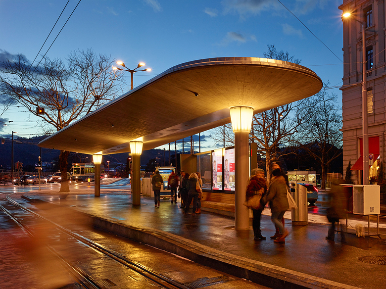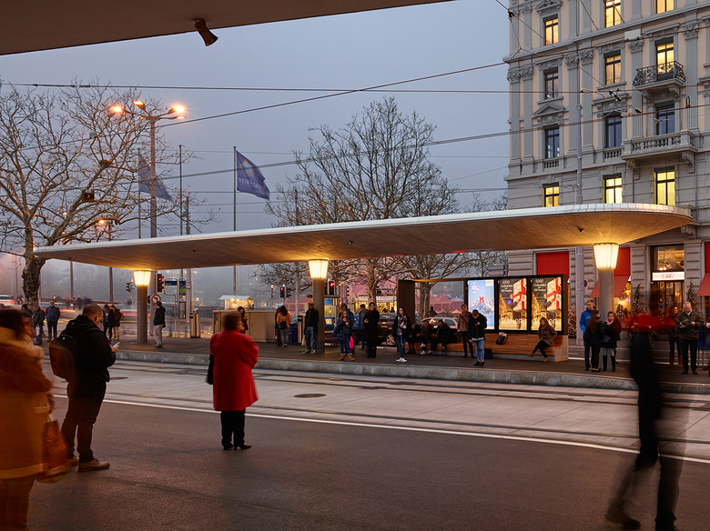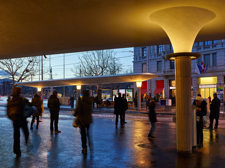 Auf Grund der stadträumlichen Situation sind sie im Gegensatz zu den Bestandesbauten nicht Gebäude, sondern Dächer – „Schirme“ – mit separat eingestellten Infrastruktureinrichtungen gemäss Anforderungskatalog der VBZ.