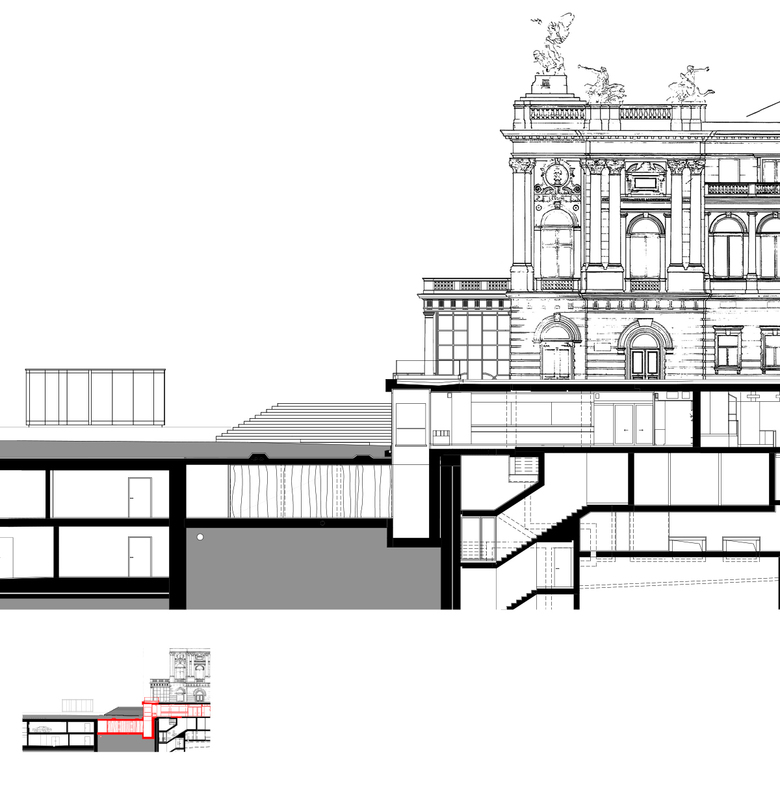 Verbindung Opernhaus - Parkhaus Opéra, Foyererweiterung Bernhardtheater