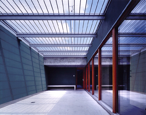 Vorgabe war ein sehr kostengünstiges Gebäude zu erstellen. Die innere Struktur ist deshalb trotz der sehr unterschiedlichen Nutzungsanforderungen klar und wirtschaftlich: entlang der Poststrasse entwickelt sich die schmalere Schicht mit den Eingangshallen, Treppenhäusern, Sanitär- und Nebenräumen, - entlang der Gleise, mit niedrigerer Lärmbelastung, die tiefere Büroschicht mit den Kundenschaltern. Diese klare, lineare Struktur wird durch vielfältige Blickbeziehungen von Schicht zu Schicht, bzw. durch alle Schichten hindurch ins Freie räumlich interessant und lebendig.