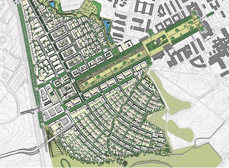 Freiräume – Der Stadtteilpark – der „Carlebachpark“ ist das ideelle und reale Zentrum des Hochschulstadtteils. Er ist Verknüpfungselement zwischen den angrenzenden Infrastruktureinrichtungen im Westen, der Parkrandbebauung im Norden und Süden sowie zu der bestehenden Hochschullandschaft im Osten. Er dient vor allem der Erholung der BewohnerInnen des neuen Stadtteils aber auch den Studierenden und Beschäftigten der vorhandenen Kliniken, der Fachhochschule sowie der Universität.