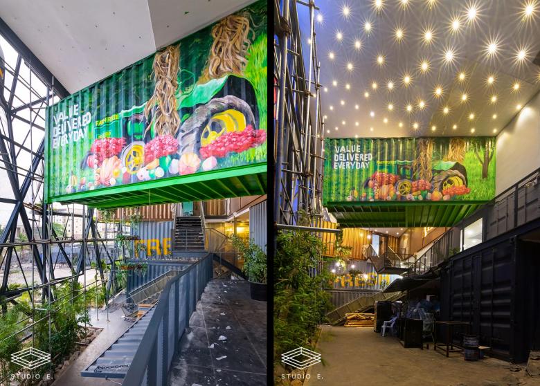 The material selection and construction techniques follow the principles of recycling and local craftsmanship. Re-used intermodal shipping containers become the main structural elements and are either visible or concealed.