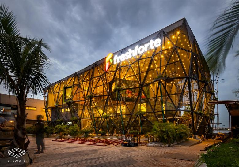 This project is a new mixed-use retail and hospitality building in Lekki, Lagos. Accessible by boat from the lagoon and by car from the Admiralty Way. The Freshforte building will house a grocery store, a restaurant, and a coffee shop.