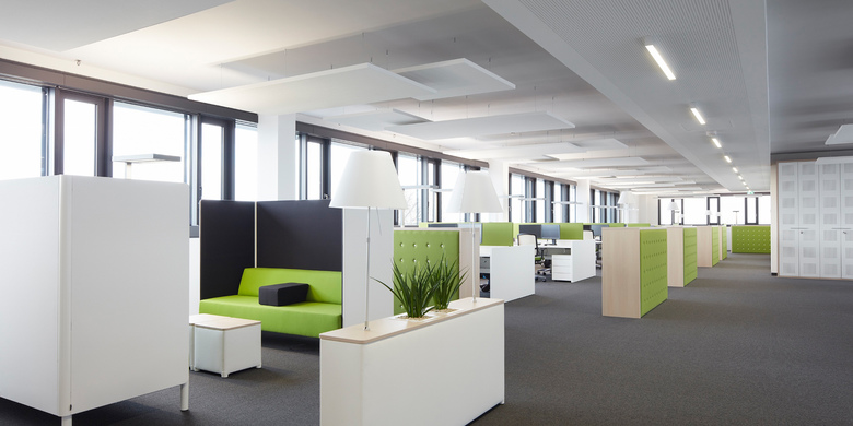 Durch Verschiebung der beiden Bauteile entsteht ein urbaner Platz. Die beiden Gebäudeteile sind über ein zentrales Forum verbunden. Einschnitte strukturieren die große Baumasse und bieten Platz für Innenhöfe, Dachterrassen und Dachgärten.