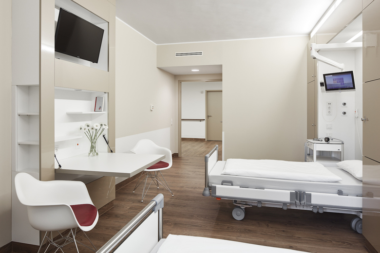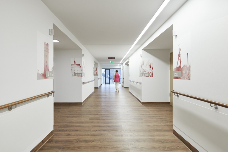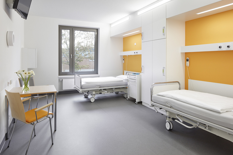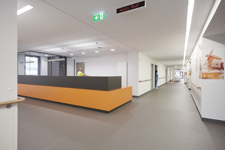 In nur 15 Monaten Bauzeit ist das neue dreigeschossige Bettenhaus der Kliniken für Geriatrie, Innere Medizin und Chirurgie fertiggestellt worden. Die für weitere 78 Patienten behaglich eingerichteten Zimmer verfügen über viel Komfort und Variabilität. Im Fokus der Planung stand die Entwicklung von zwei neuen Geriatriestationen, die auf die besonderen Bedürfnisse der Patienten eingehen. Speziell konzipierte Bildmotive aus der Region pro Zimmer, wecken alte Erinnerungen an die Heimat. Sie sind auf das Farbkonzept abgestimmt und bieten Orientierungshilfe.