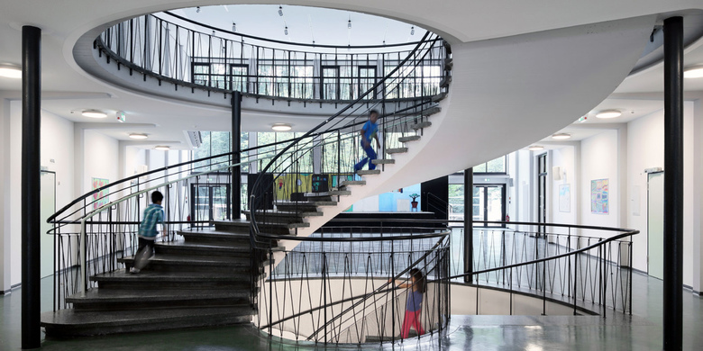Zur wesentlichen architektonischen Aufgabe gehörte dabei der sensible Umgang mit der für die 1950er Jahre charakteristischen filigranen Primärstruktur. Der Einsatz von speziellen energetischen Materialien wurde dabei exakt auf die Fassadenstruktur und die Stahlbetonlinien der Gebäudekörper abgestimmt, wodurch das historische Erscheinungsbild bewahrt werden konnte.