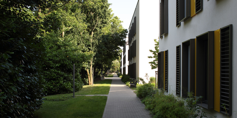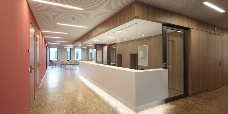 Die vier Bettenhäuser folgen klaren Entwurfsprinzipien und schaffen flexibel belegbare Stationen. Die 340 Patienten in den Bettenhäusern und 15 Patienten in der Mutter-Drogen-Kind-Station im Altbau sind ausschließlich in Ein- und Zwei-Bettzimmern untergebracht. Durch die Atriumtypologie entstehen gut belichtete Flurzonen, die eine klare Orientierung und Möglichkeiten zum Schlendern bieten.