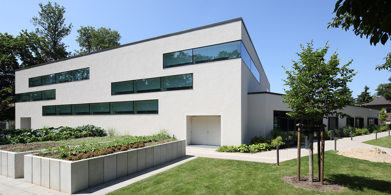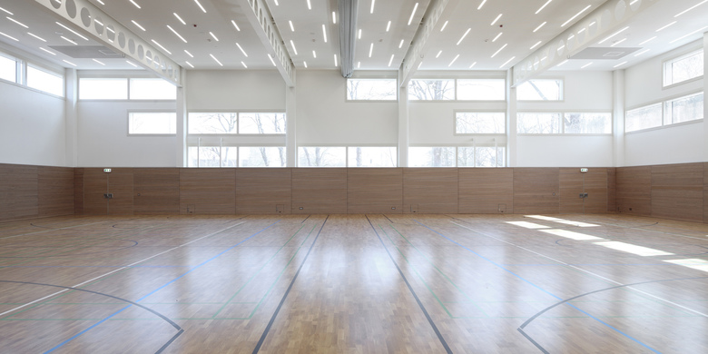 Auf dem Gelände entstand für die therapeutischen Angebote der Psychiatrie eine Halle für Sport und Ökotherapie. Diese sollte zwei Spielfelder und mehrere Therapieräume unter einem Dach konzentrieren und als zentrale, gemeinsame Einrichtung der Klinik wahrgenommen werden, die zu verschiedenen Anlässen flexibel genutzt werden kann. a|sh architekten setzten die neue Halle als rautenförmigen Baukörper um, in dem die Zweifeld-Sporthalle, ein Fitnessstudio, Räume für Ökotherapie sowie Schulungsräume mit EDV-Arbeitsplätzen untergebracht sind. Bei der Planung wurde darauf geachtet, dass sich die Halle harmonisch in das Klinikgelände und die Umgebung einpasst. Sie ist vom Hauptgebäude aus schnell zu erreichen und gleichzeitig von den Gartenseiten der benachbarten Wohnbebauung freigestellt.