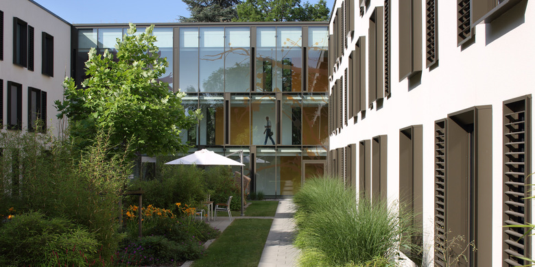Das Zentrum für seelische Gesundheit bildet eine große Einheit, die jedoch durch die Gliederung in Einzelbauteile den menschlichen Maßstab nicht verlässt: Die Patienten leben in Häusern mit kleinen Atrien. Die Gebäude selbst bilden einseitig offene Höfe, die den geschlossenen Stationen im Erdgeschoss den Blick auf unterschiedlich gestaltete Gärten ermöglichen.