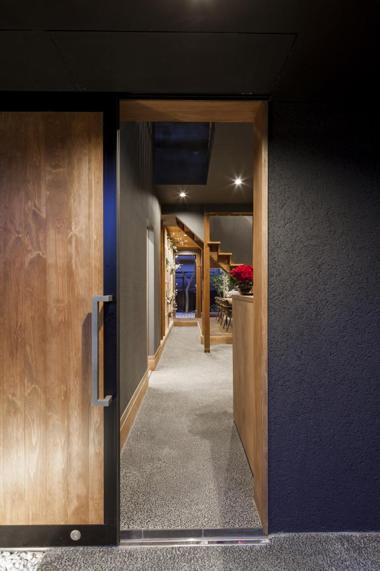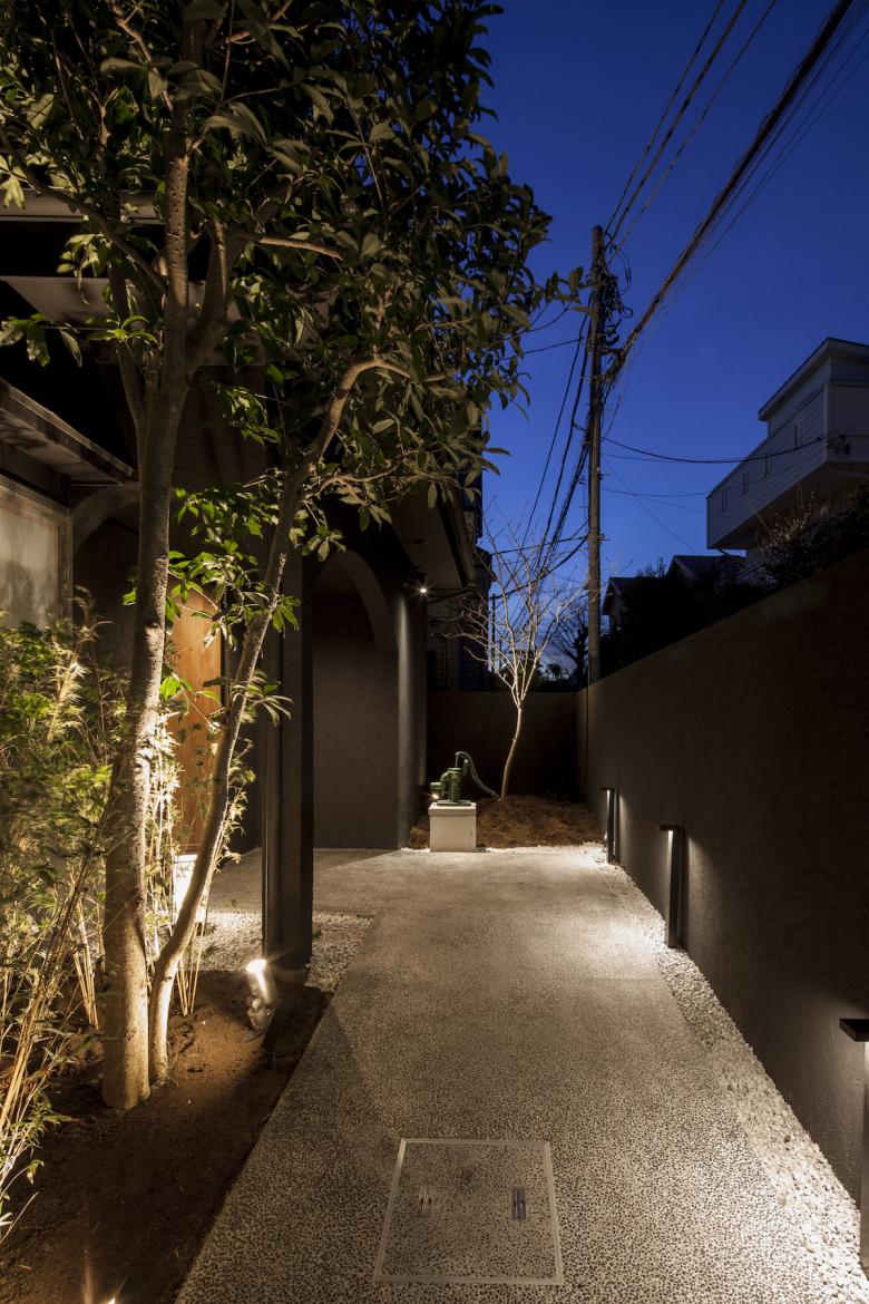 路地がそのまま玄関から建物の中を抜け、奥の庭に至る構成とすることで、鎌倉の持つ雰囲気が連続して建物の中も入り込んでくることを意識しています。