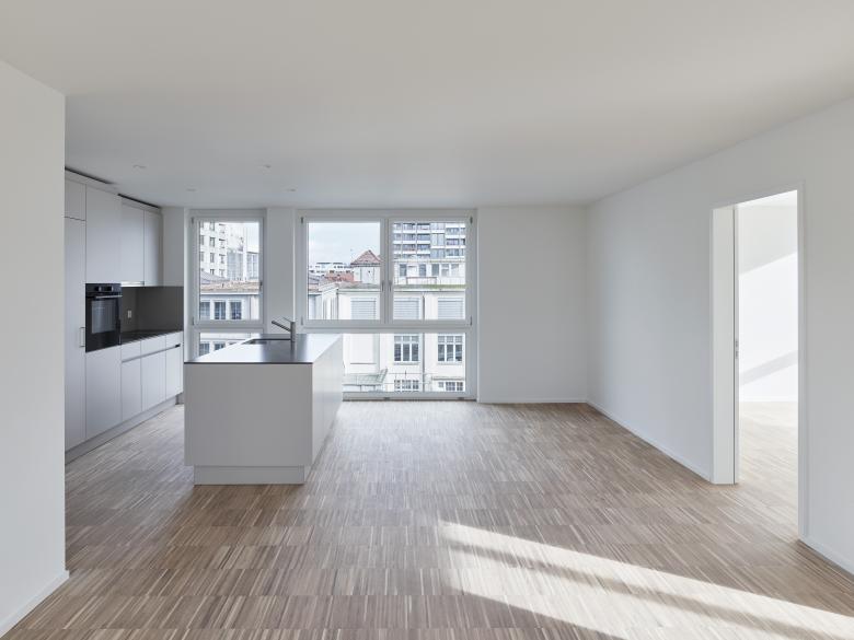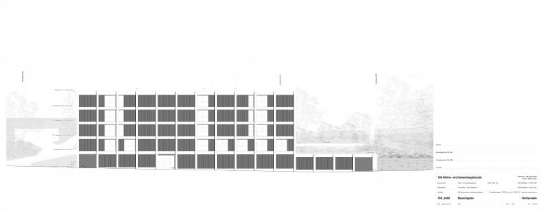 Der gegen die Werkstattgasse hin fünfgeschossig und die Obermühlestrasse viergeschossig in Erscheinung tretende Bau positioniert sich selbstbewusst im westlichen Zugang des Papieri-Areal’s, welches in den nächsten Jahren eine Transformation vom einstigen Industriegelände hin zu einem urbanen Stadtteil von Cham entwickeln wird. Die simple, langgezogene Gebäudeform des Neubaus orientiert sich an den Gewerbebauten auf dem Papieri-Areal.