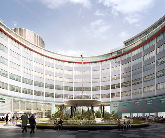 The BBC Television Centre Masterplan transforms the existing iconic site into a mixed-use development that combines office and studio space for the BBC with a range of other uses including entertainment and leisure facilities, public open space, offices, housing and a hotel. The listed buildings, including the famous Television Centre forecourt and façade, Studio 1 and the central Helios Plaza, will be preserved and opened up to the public for the first time. The 14 acre scheme places strong emphasis on pedestrianised areas and landscaped open spaces to stitch the site back into the local area and complement the overall regeneration of the White City area.