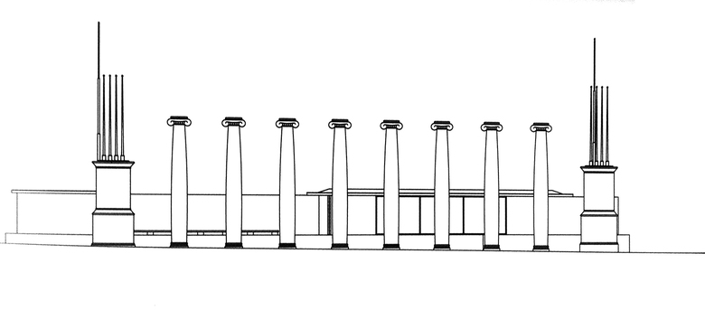 Dibuix de les vuit columnes i les dues peanyes / Autor: Ricardo Daza
